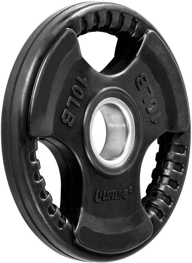 Rubber coated to be easy to grasp, impact-resistant and to protect equipment, walls and floors, Olympic Grip Plates have accurately measured mass for consistent training and balanced loads. Features integrated metal sleeve and standard 2" holes to smoothly and securely fit on Olympic size bars as well as oversized holes with grip design which allows these weights to be used for handheld exercises.