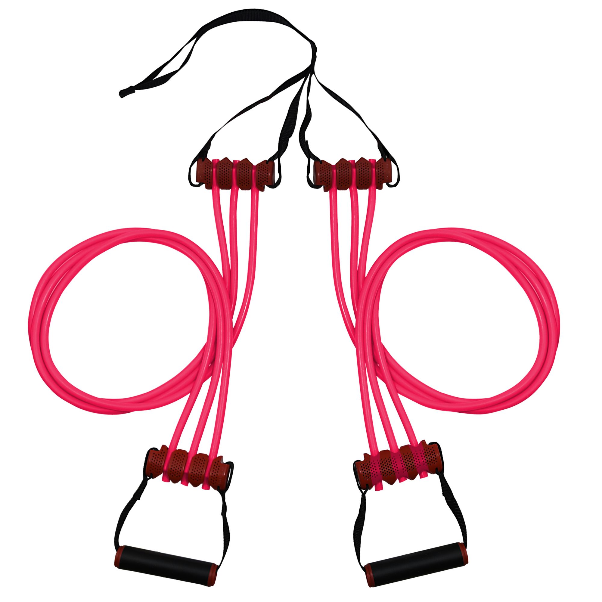 The Lifeline® Triple Trainer Cable features 6 cables - 3 per handle with the option to add or remove cables to change the resistance. Each handle acts independently of each other while connected to a door, pole, or with a partner.