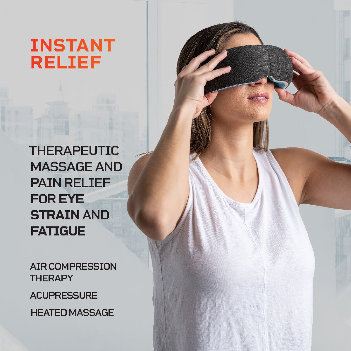 Relieve eye fatigue and headaches with Lifepro's eye massager. Enjoy rhythmic percussion massage, oscillating pressure, and soothing heat targeting pressure points. Customize your experience with 4 programs and 2 modes. Play your favorite music via Bluetooth. Small, portable, and foldable for on-the-go relief. With a lifetime warranty and support from our 'guiding angels,' experience soothing comfort anytime, anywhere!
