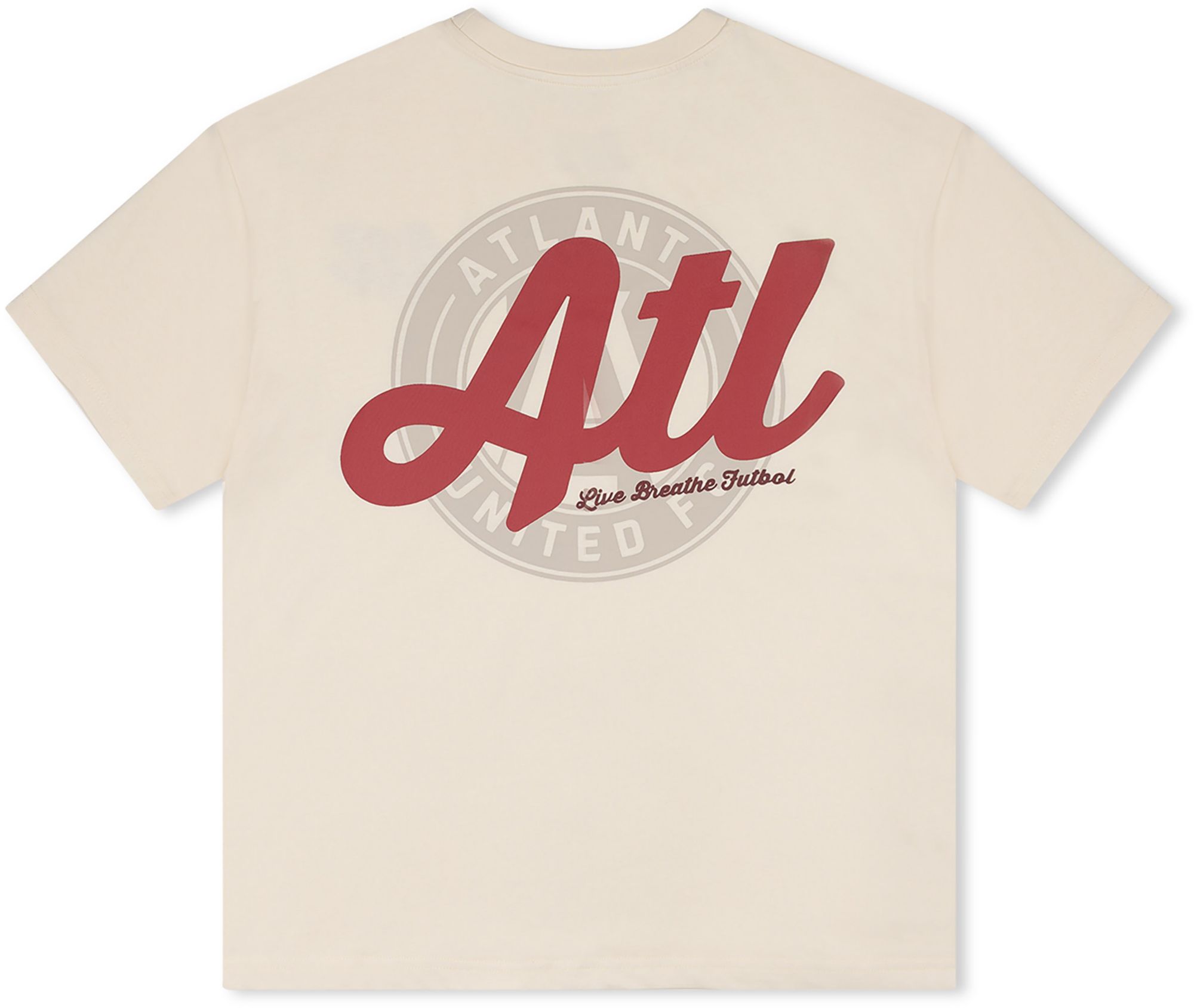 Live Breathe Futbol Men's Atlanta United Off White Script T-Shirt