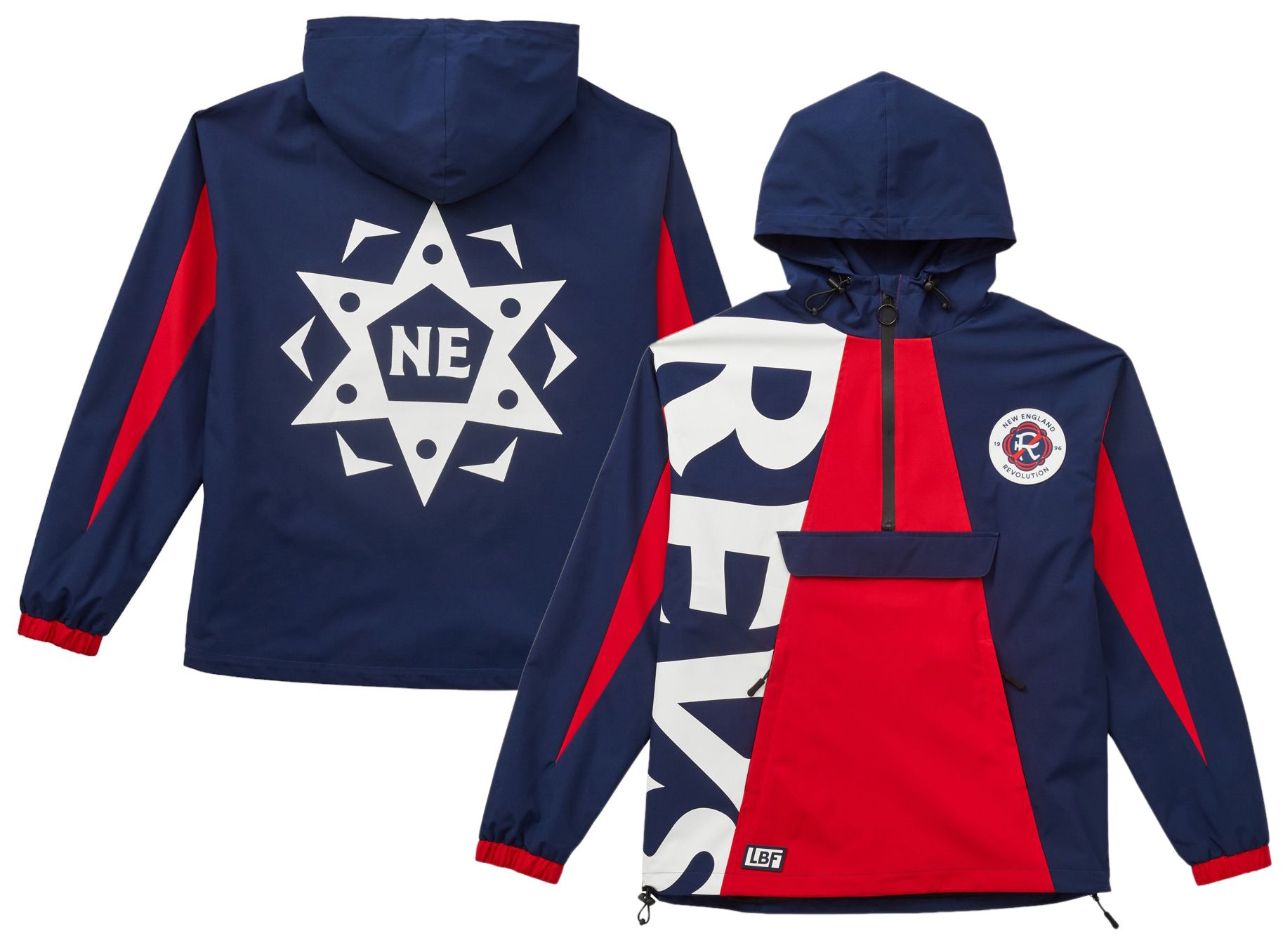 Live Breathe Futbol Men's New England Revolution 2-Hit Multicolor Anorak Jacket