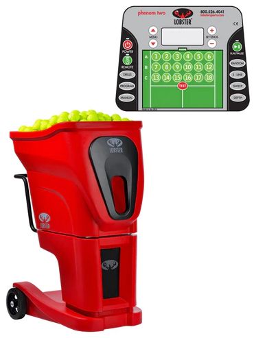 The phenom® two is a fully programmable machine that incorporates digital technology to produce complex functionality through a very simple user interface. For a quick, hassle free workout, use the twelve, pre-programmed drills. Feeling more ambitious? Build your own drills that can shoot to an incredible 18 shot locations with customized speed, spin, and feed rate. In other words, you can create personalized court drills capable of simulating match play like never before! Includes a 20-function remote control or Wi-Fi remote control for Apple. The phenom two is the best tennis ball machine in the Lobster Sports product line. This fully programmable machine offers cutting edge digital technology that allows you to program your own custom court drills to an incredible 18 shot locations while customizing shot elements such as: speed, spin, and feed rate too. The variations are infinite-create personalized court drills capable of simulating match play like never before! Anyone can transform the weak points of their game into areas of complete domination with the Lobster phenom two tennis ball practice machine. Because of their size, these Lobster tennis ball machines ship in two pieces and some minor assembly is required. The phenom two is made in the USA and is covered by Lobster’s 2-year warranty.