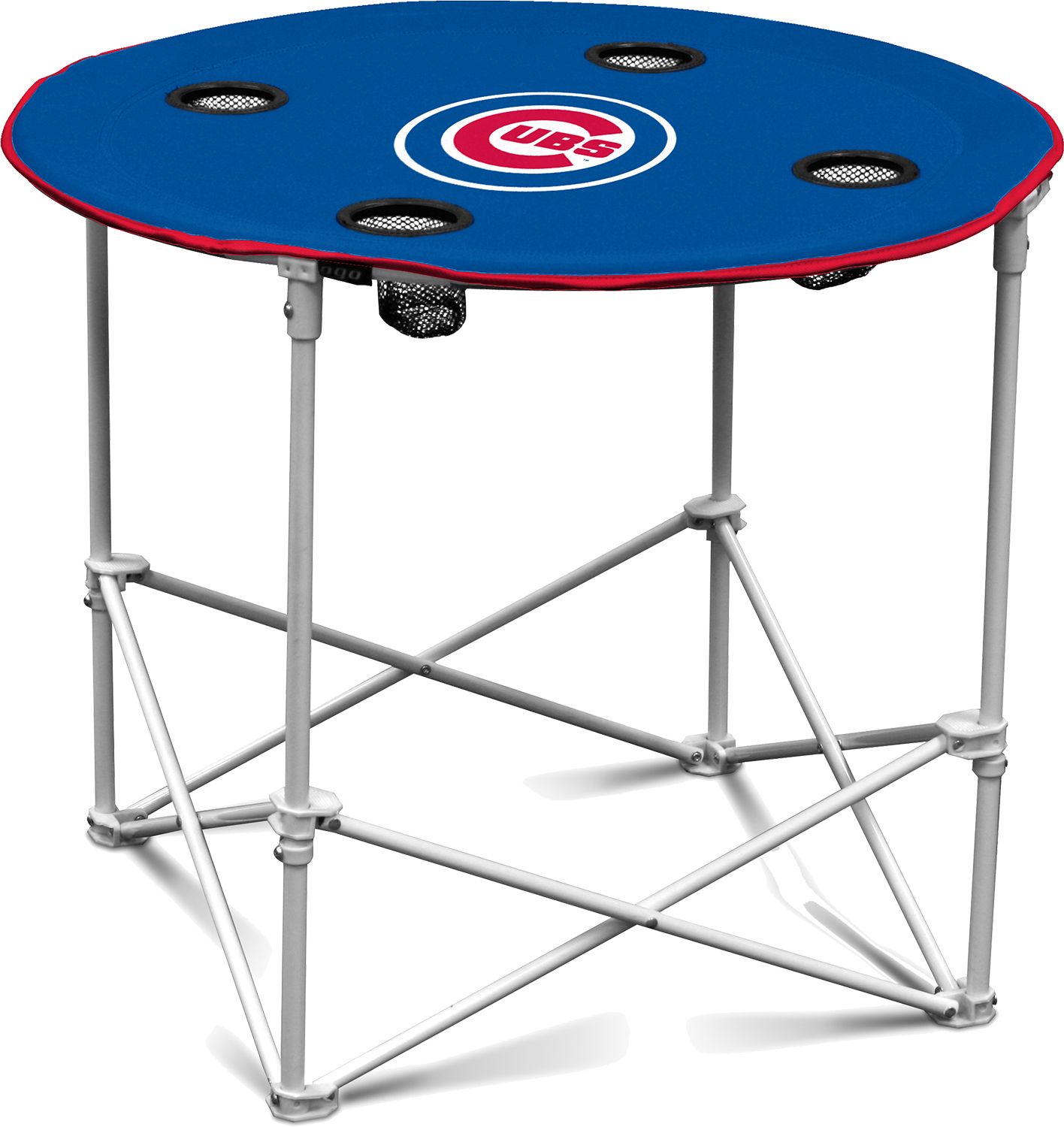 Bring along a portable table to your next tailgate with the Logo® Chicago Cubs Portable Round Table.