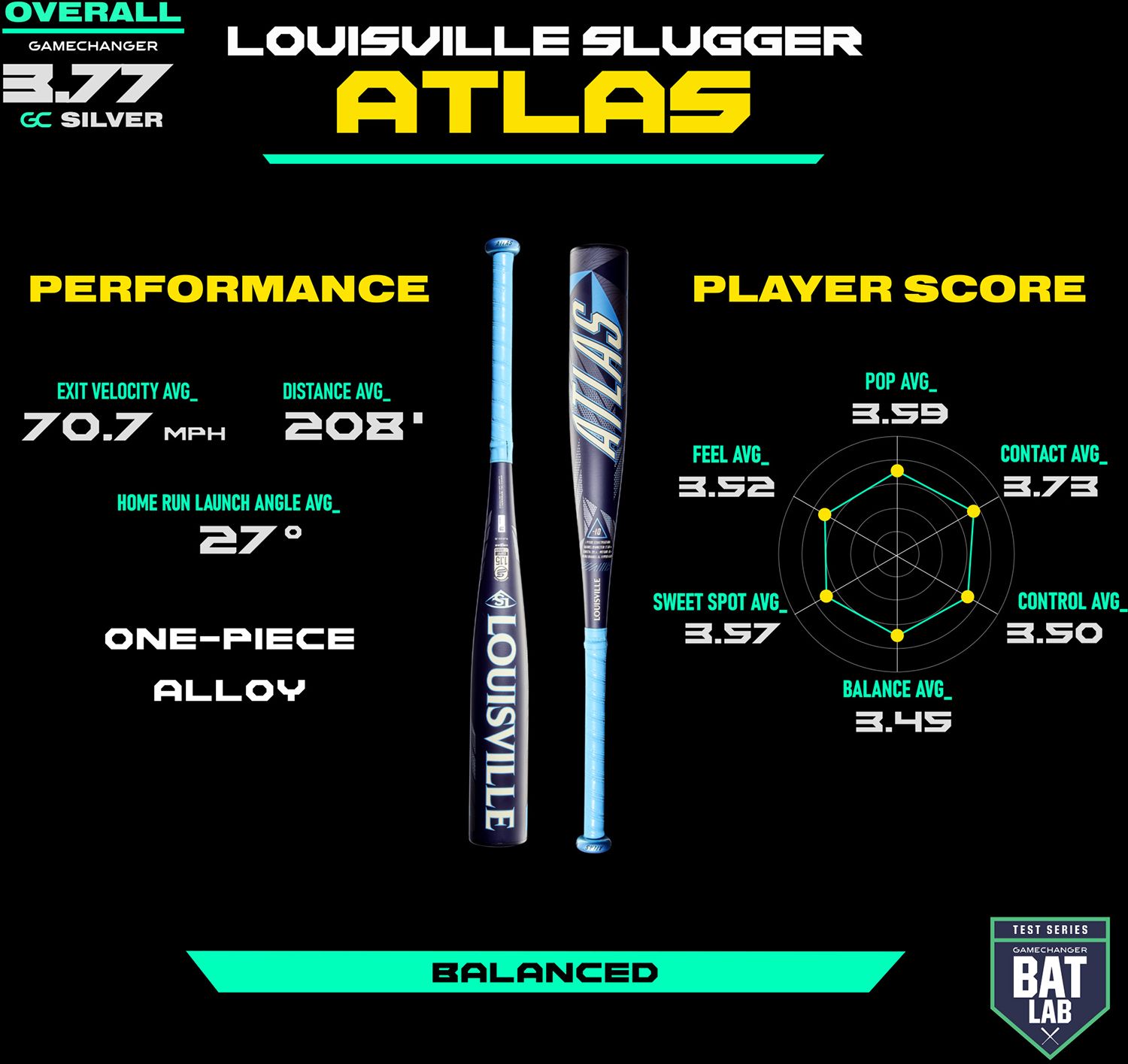 - One-Piece Alloy Construction: Stiff, durable design focused on amplifying a player’s bat speed to deliver peak exit velocities