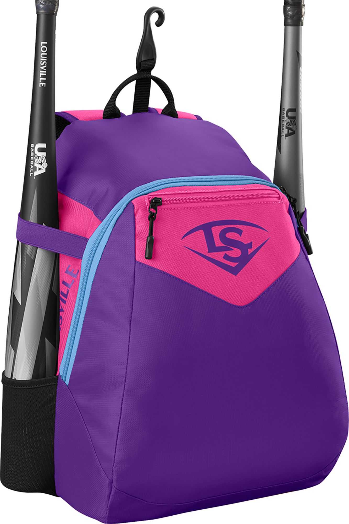 Equip your young ball player with the perfect backpack to store and haul their practice and game day gear. The Genuine V2 Stick Pack from Louisville Slugger features a generous main compartment to stash a youth helmet, fielding glove and cleats, and two mesh bat sleeves on the sides can carry bats or water bottles. Foam padded shoulder straps help young players take their game on the road, and an integrated fence hook allows for easy storage in the dugout.