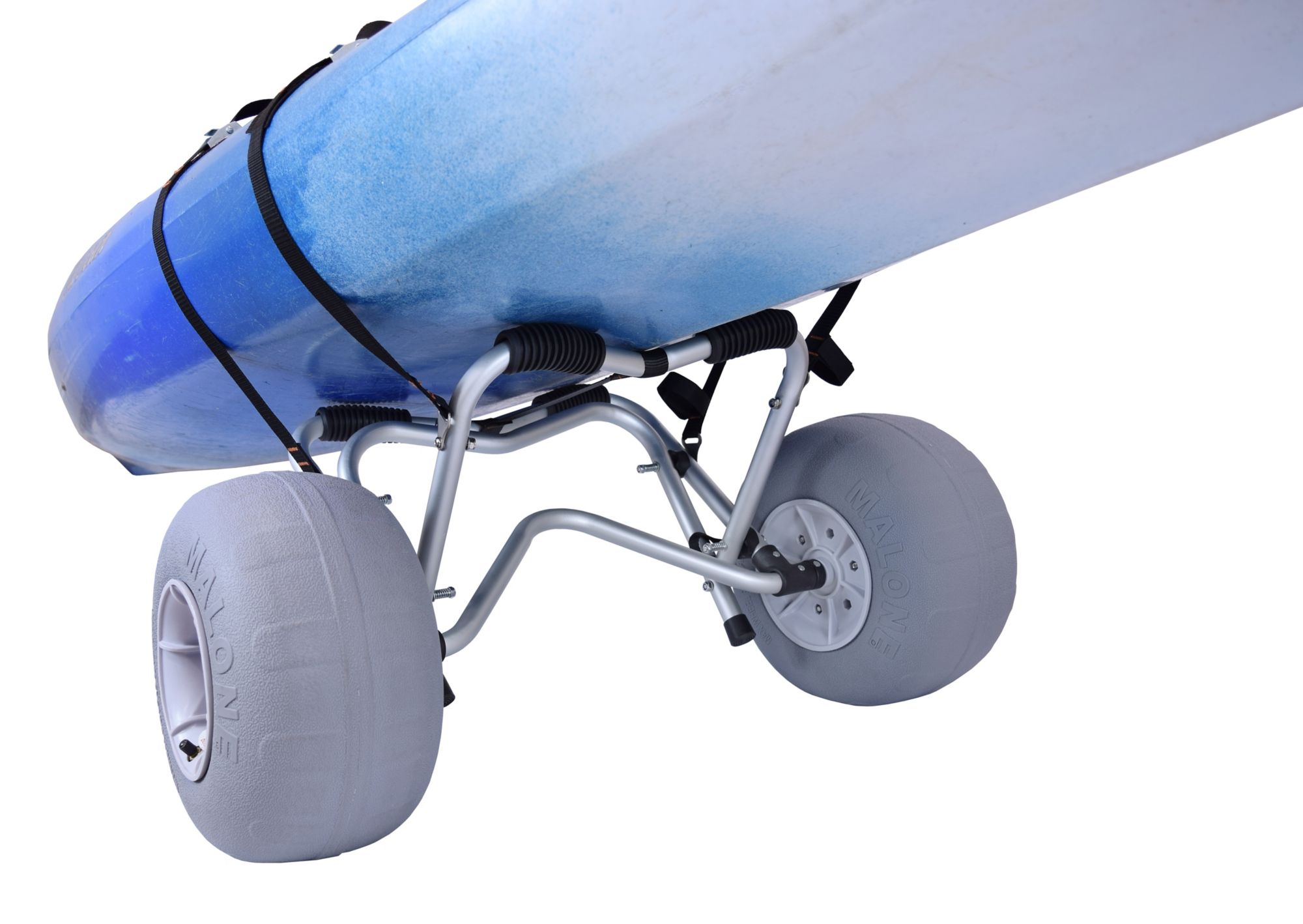 For a “beach-ready” transport system this season, sport the Malone® ClipperTRX™ S Sand Cart. This sand cart by Malone® works best with V-style bottom canoes and kayaks and is constructed with tough marine grade aluminum for durability and long-lasting use. With a low pressure hand air pump to inflate the low pressure wheels, this sand cart will be sure to get the job done!