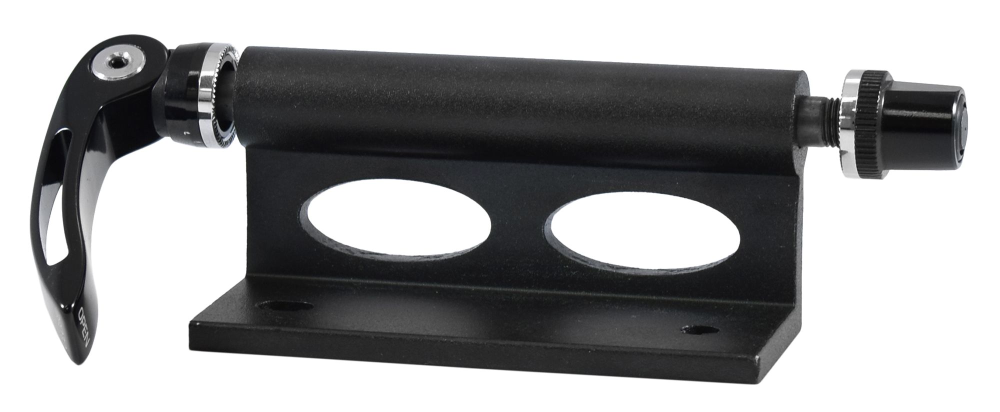 The Malone® Fork Block QR Universal Fork Mount lets you easily create your own bike rack in the bed of your truck. Able to be installed on any flat surface, this Fork Block features a quick release skewer that holds the fork of a single bike to the block. In addition, this powder coated aluminum carrier is equipped with pass-through holes designed for security cables.