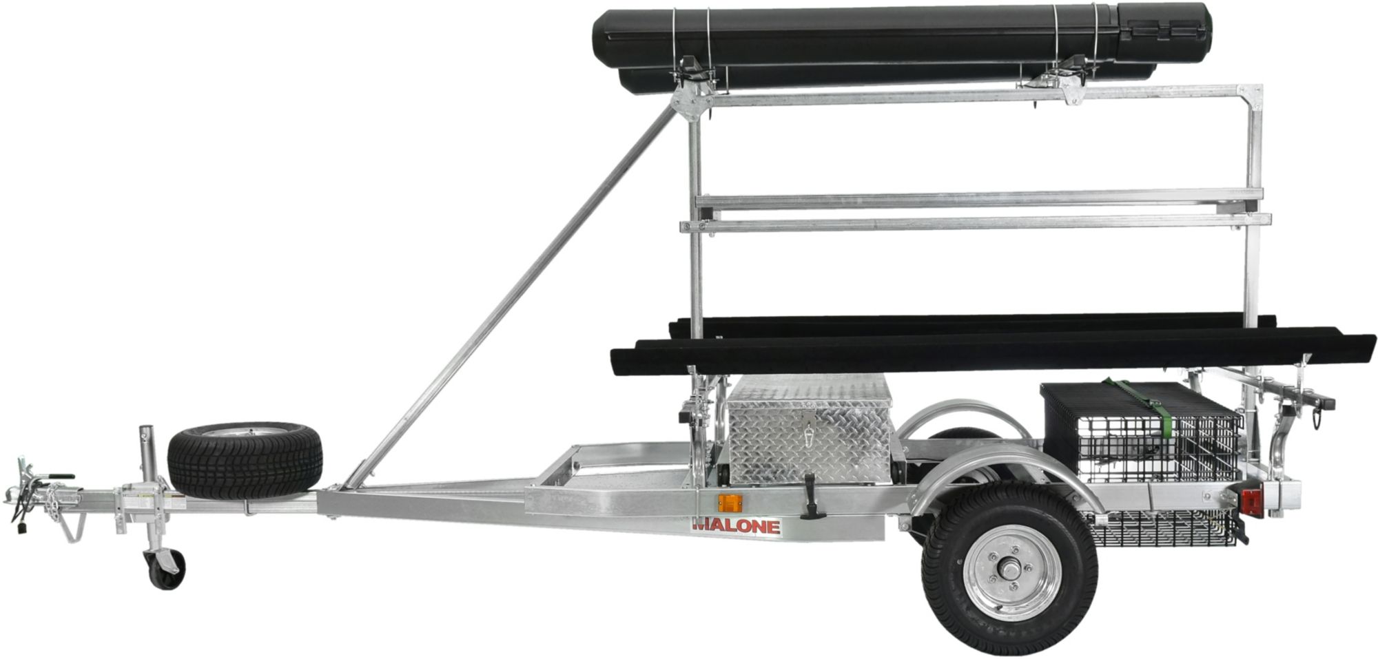 The Malone® MegaSport™ 2-Boat Ultimate Angler Package – Bunks is the perfect package for the avid angler. This trailer has it all. It features the MegaSport™ Base Trailer with a 1,000 pound total load capacity and is perfect for hauling your favorite boats and outdoor gear wherever you go! Padded bunks make loading your kayak easier than ever, while 15 foot load straps with corrosion-resistant buckles provide the security your kayak needs during travel. Both wet and dry storage, milk carton containment, rod holders (2), a second tier and a full size spare tire are all included.