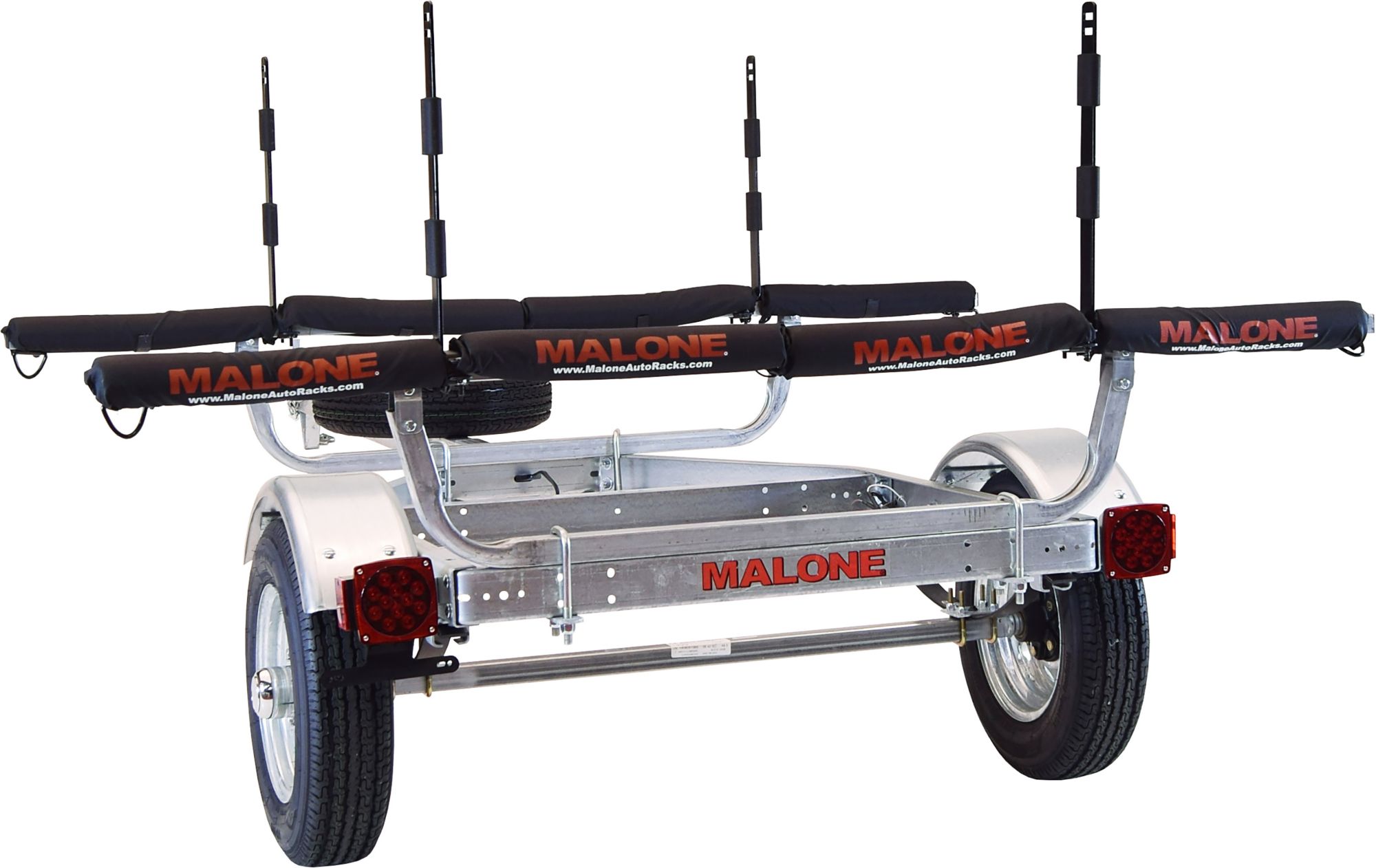 The Malone MicroSport™ 4-Kayak Trailer Package is designed to safely carry four recreational kayaks (up to 20' in length) at most posted highway speeds. We utilize two sets of Stacker Kayak Carriers along with four sets of 18" Rack Pads to securely hold the kayaks in place. This Package is one of our best values for transporting multiple recreational kayaks easily from your driveway to the water's edge.