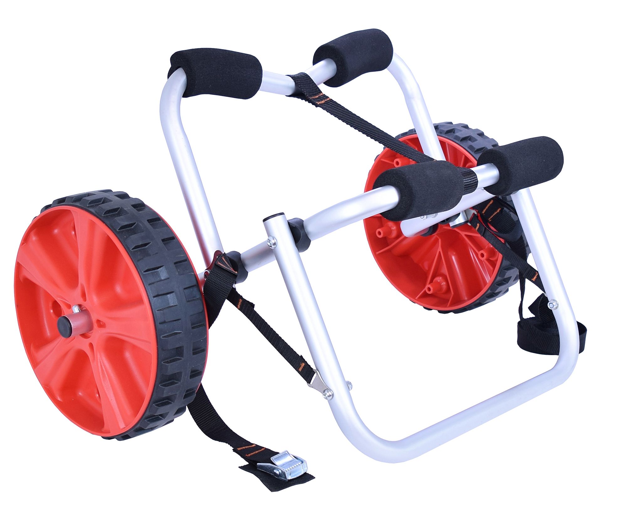Constructed with marine grade non-corrosive anodized aluminum, the Malone® NomadTRX Standard Kayak Cart will get your ‘yak to and from the water in no time. Its oversized foam padding protects your kayak, while an on-board cam style load strap provides safety and security. With TRX Never-Go-Flat tires with high grip rubber tread, you’ll enjoy many years of performance and service using this kayak cart by Malone®.