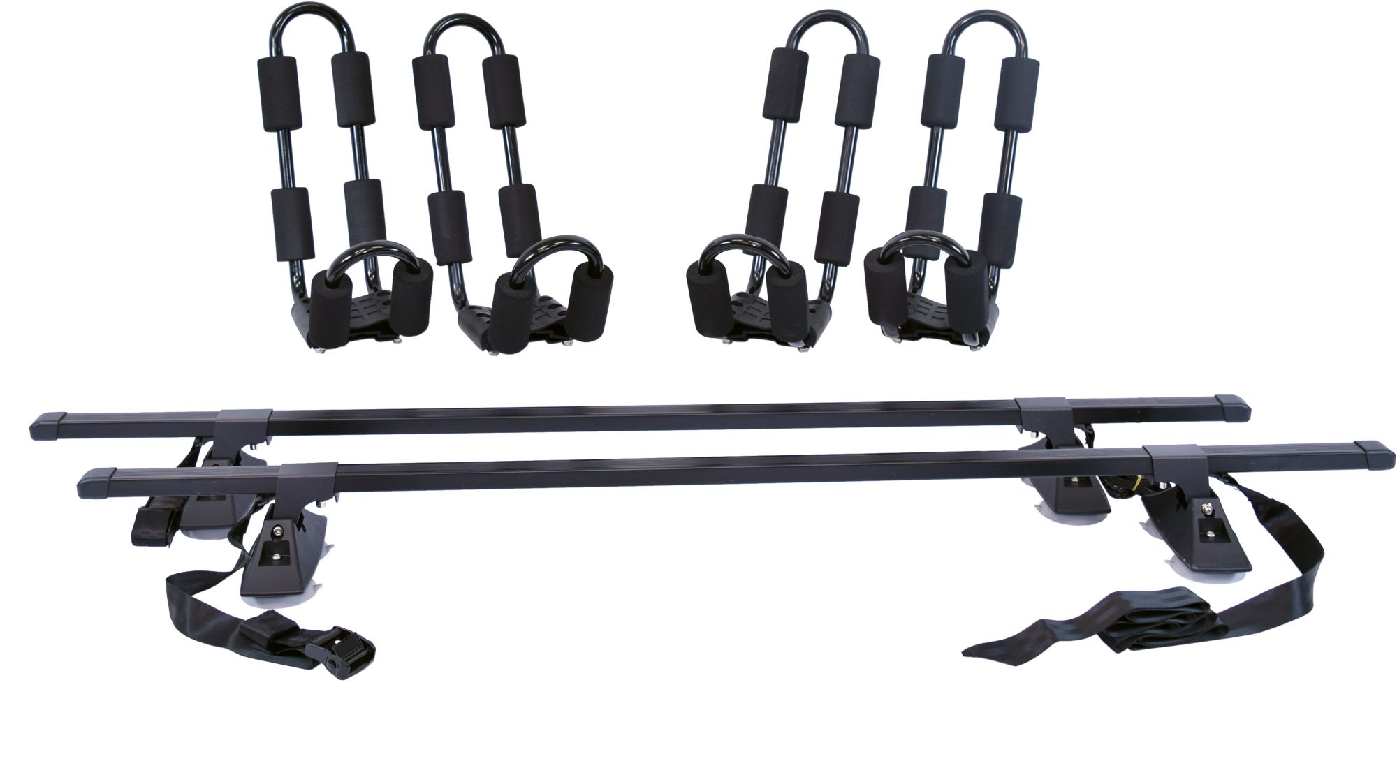 A complete cross bar system and J-Style kayak carrier 2-Pack. Offering maximum durability & affordability for two boats on bare roof vehicles