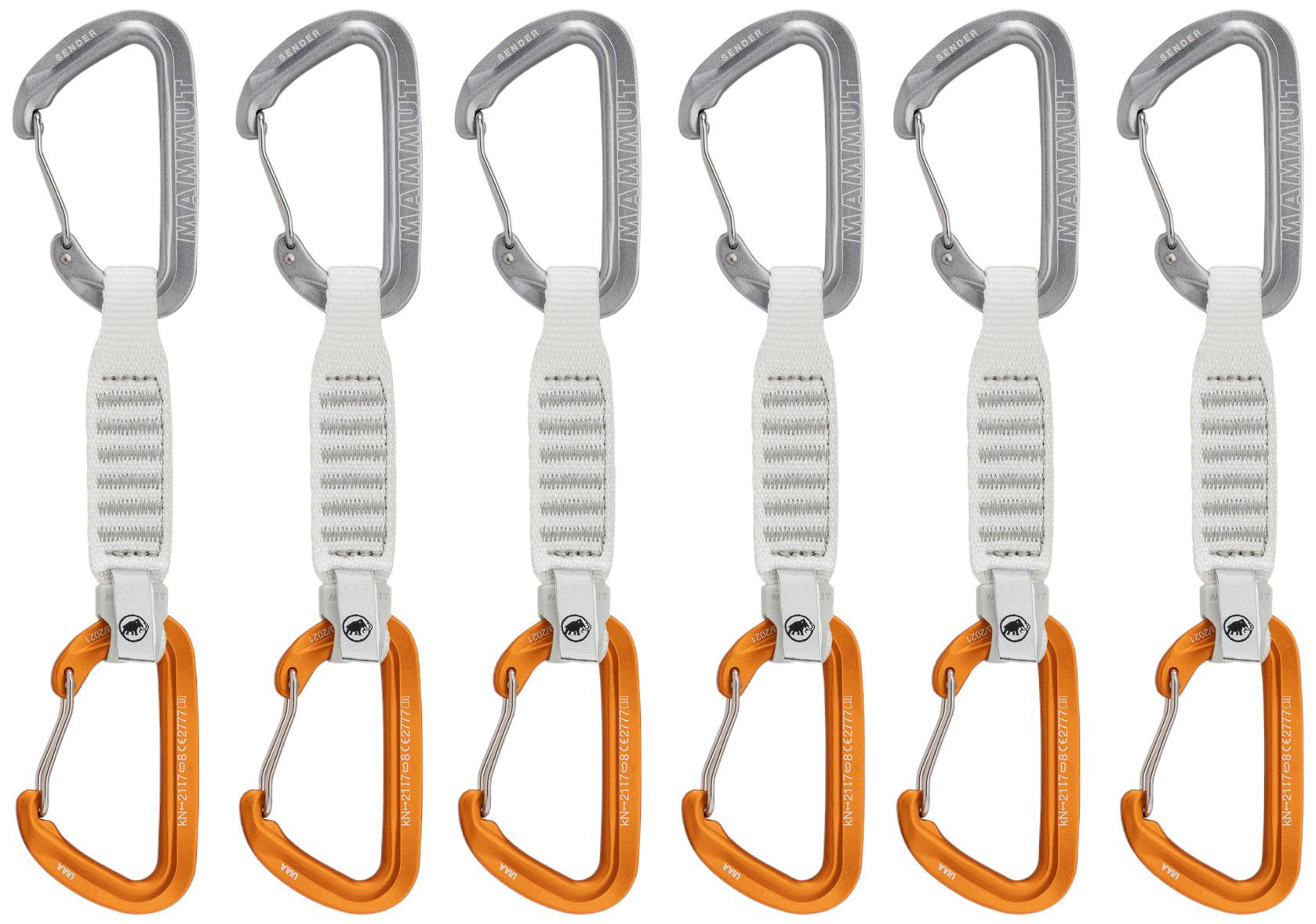 Great lightweight quickdraws. The dogbones are wide and easy to grab, but thin so can twist a little. The carabiners are a nice medium size and have a nice clipping action for a wire gate. Despite their light weight, they seem very durable.