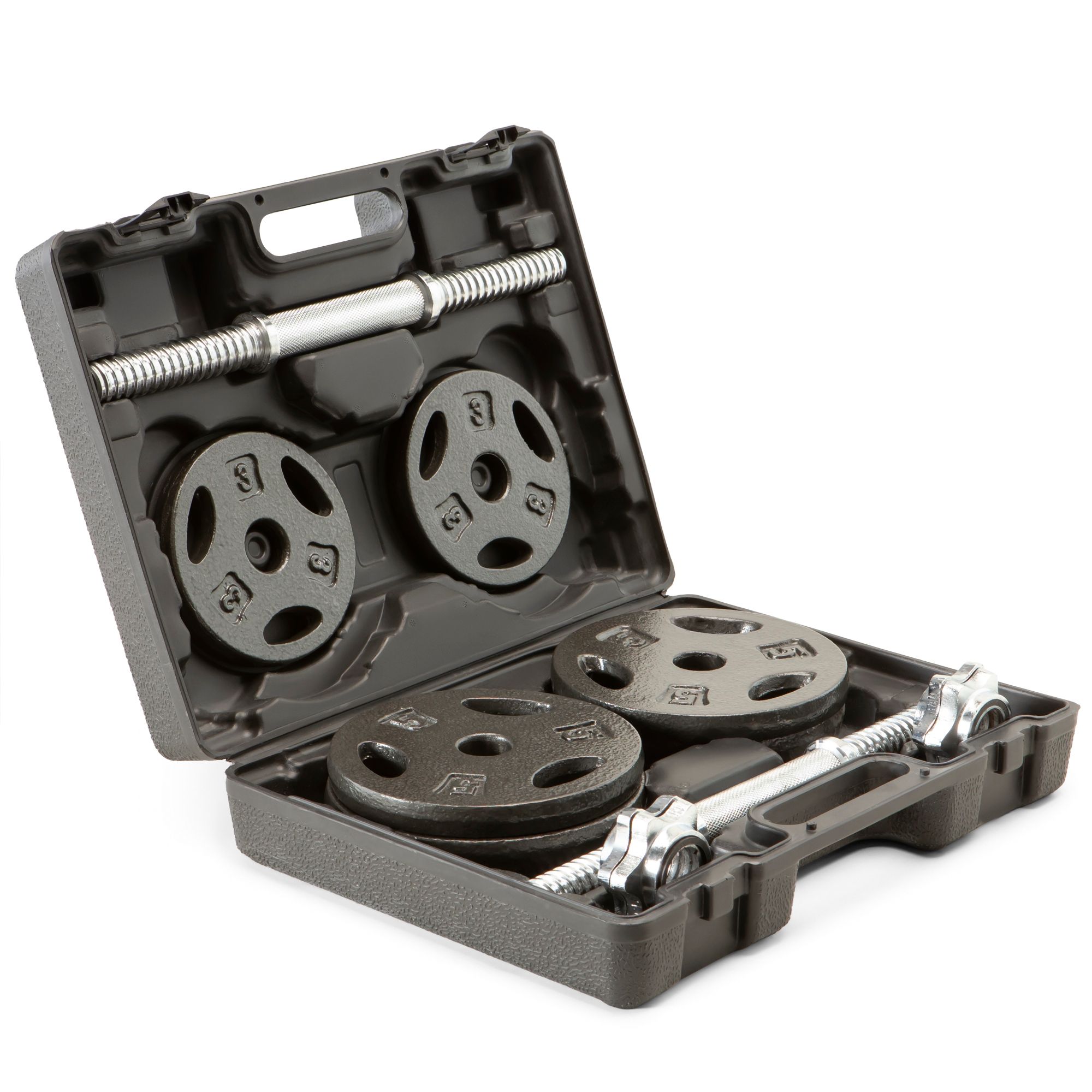 The Marcy® 40lb. Cast Iron Dumbbell Set is manufactured with a process using recycled materials that are safer and cleaner than your traditional cast iron weight plates. With non-rust weight plates and molded plastic grips that are contoured to comfortably fit in your hands you'll lose nothing in durability and functionality with this cast iron dumbbell set.