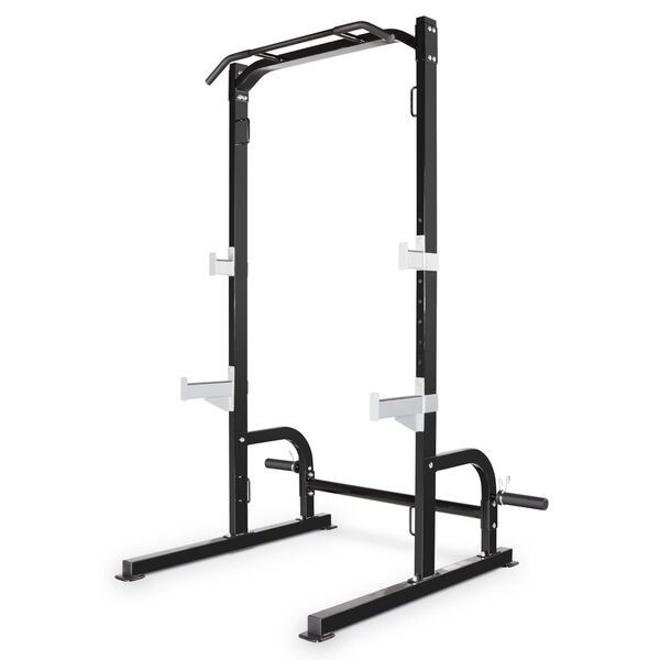 The Marcy® Half Olympic Cage System offers a walk-in cage with adjustable safety and bar catches that is perfect for home gym use. With a durable frame constructed of sturdy steel and anchoring points for straps and bands, you can expand your strength training workout routine. The two Olympic plate storage posts make it easier than ever to organize your free weights for convenience and easy storage.