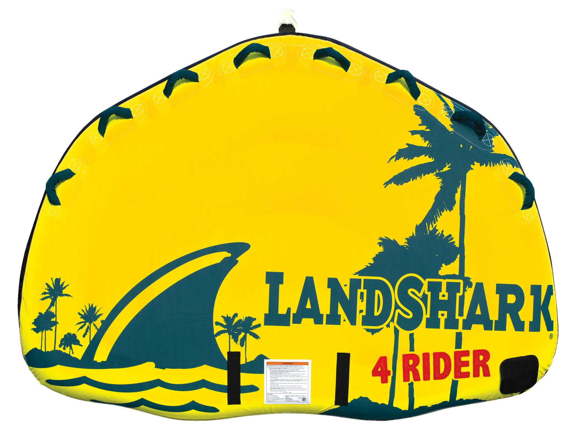 The Margaritaville® Landshark 4-Person Towable Tube is perfect for a hot summer day out on the river, bay or ocean water! Enjoy unmatched comfort as you splash through the waves with its SoftTec Riding Area, and hold on tight to its nylon handles for a secure grip. Inflate and connect this tube in a jiffy with its Quick Valve for fast and easy inflation and Quick Connect Tow Hook for easy connection to the boat.