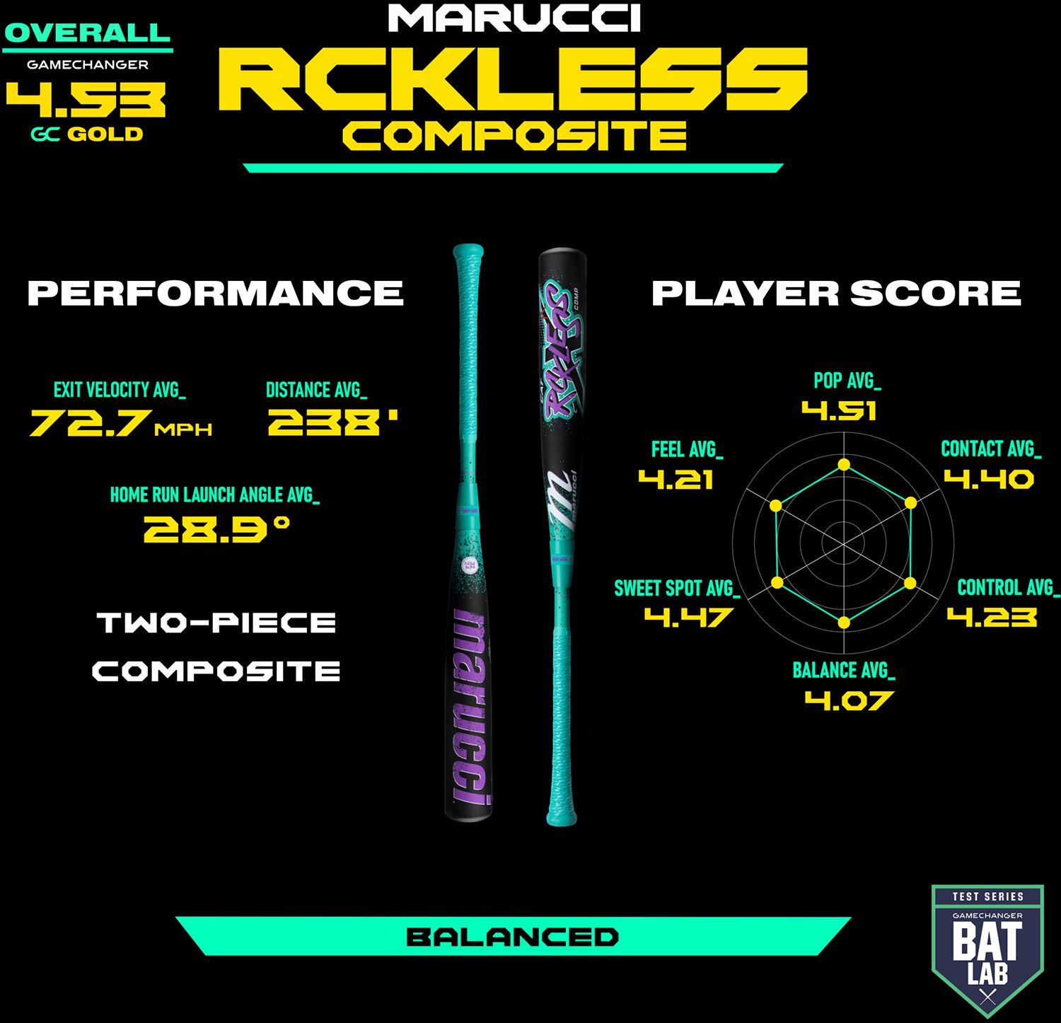 - Two-Piece Composite Construction: Longer barrel with a wider sweet spot for increased performance.