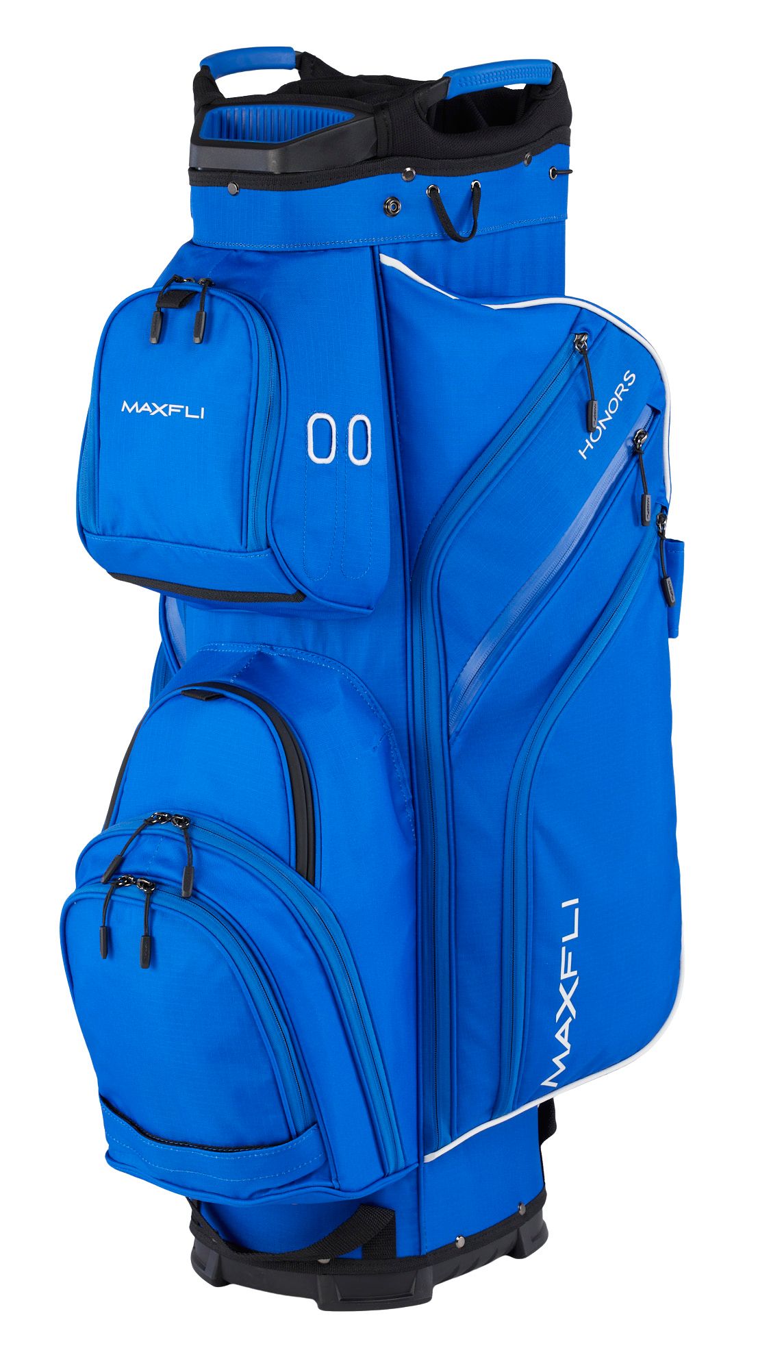 Perfect size cart bag that will accept an oversized putter grip. Love the top pouch has Velcro on it to lift it up and place the cart strap under. Well worth the money.
