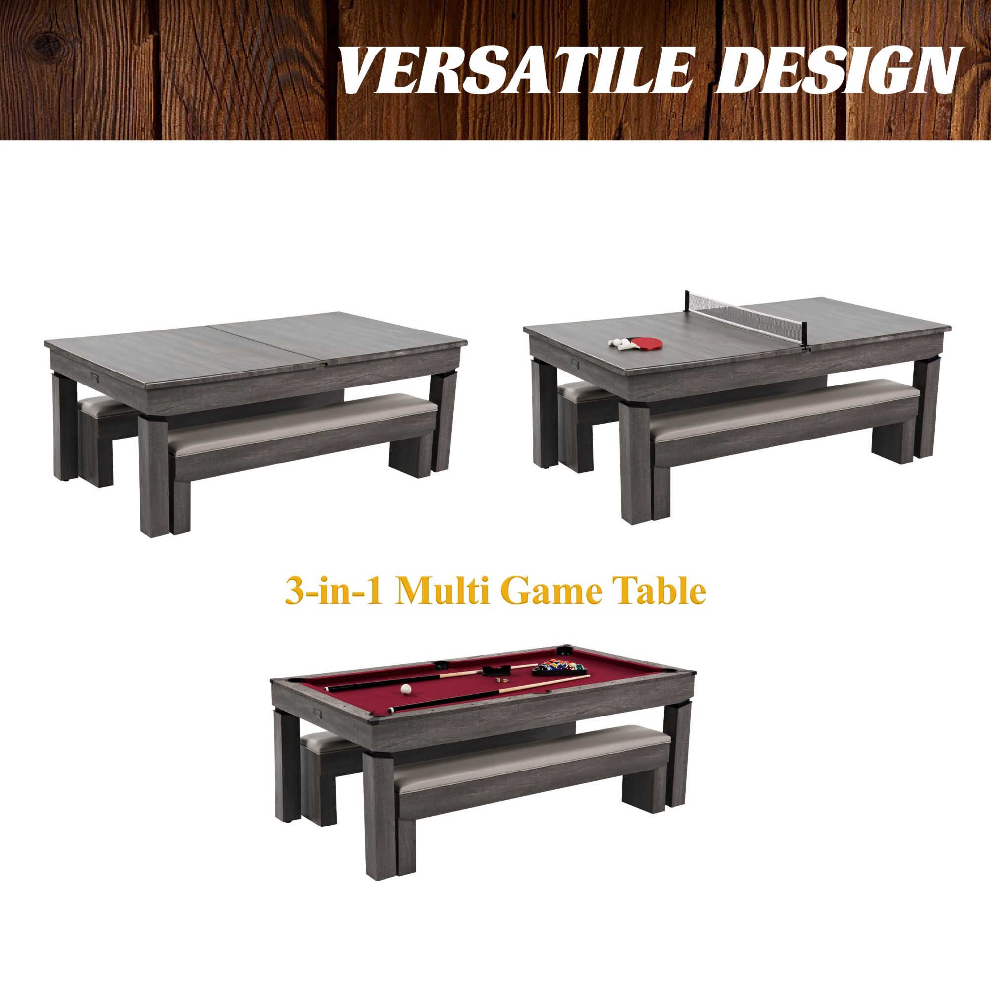 - 3-in-1 design: billiards, table tennis, and dining