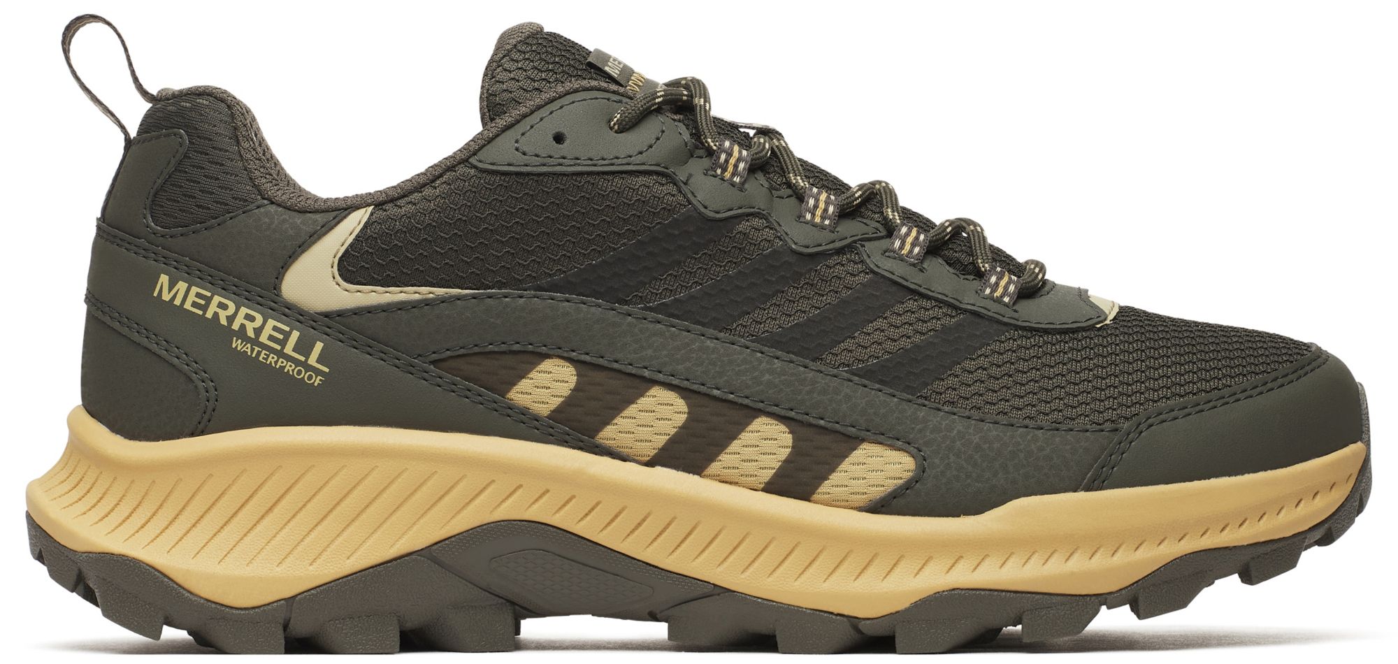 The Speed Strike 2 Waterproof delivers the comfort and weather protection you expect from a waterproof hiker, but with a faster, more athletic feel. Built with extensive recycled materials—from laces and webbing to mesh lining and the footbed cover—it features a 50% recycled EVA footbed and sits atop a Merrell sticky rubber outsole that provides dependable traction wherever you need it.
