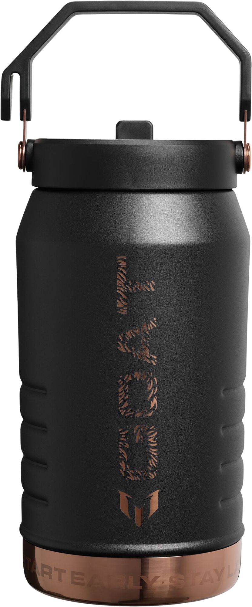 The secret? Start early. Stay late. Expect magic. The Messi x Stanley 1913 collection shows up in pebbled GOAT Black with shining rose gold metallics. The 64-ounce IceFlow™ Flip Straw Jug goes all day with fewer refills. Sip quick — just flip up the built-in straw and fuel your own magic on and off the pitch.