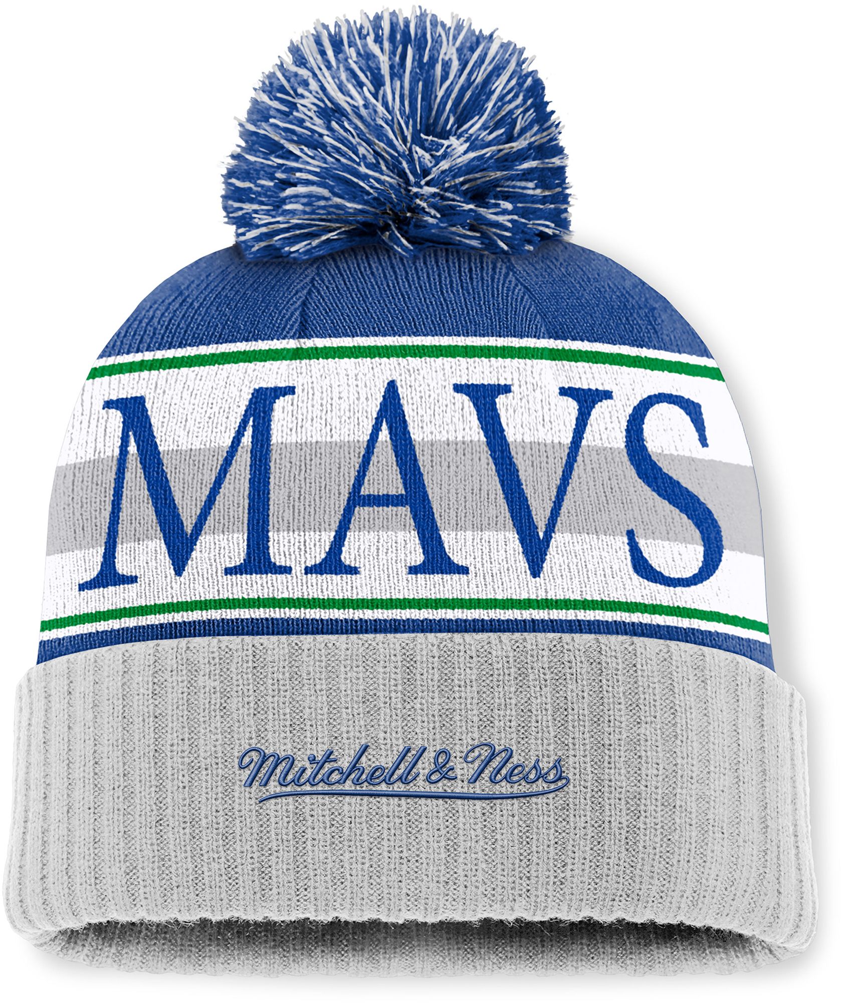 Mitchell & Ness Adult Dallas Mavericks Blue Cuff Pom Knit Beanie