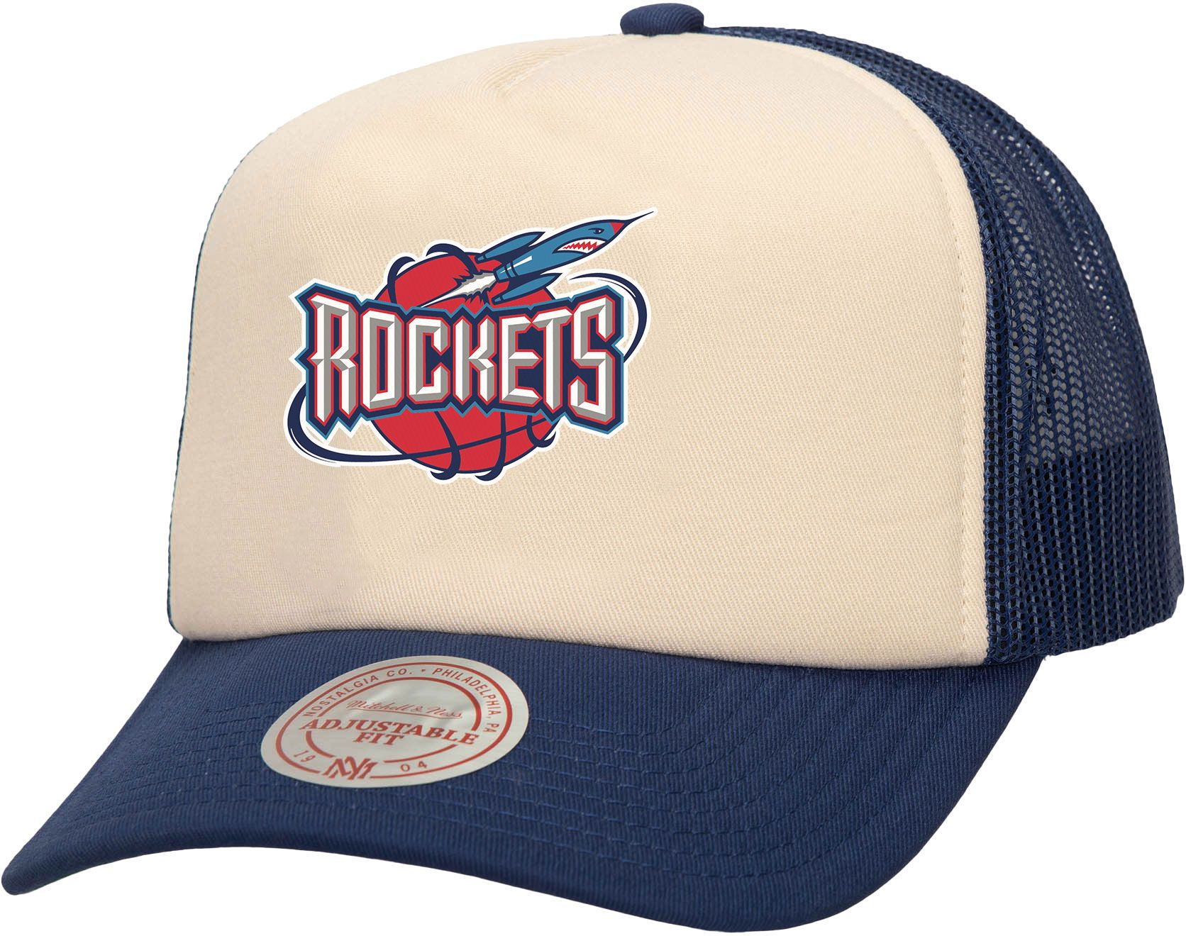 Mitchell & Ness Adult Houston Rockets Off White Block Trucker Hat