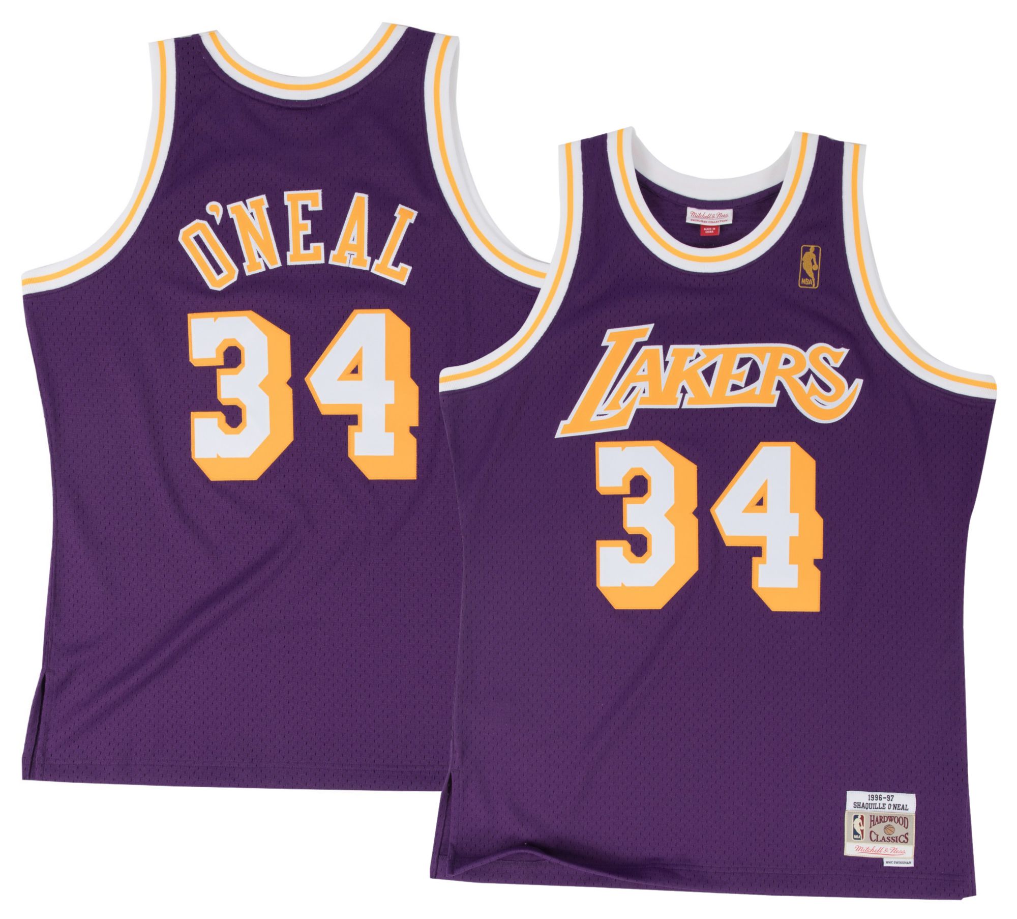 Mitchell & Ness Adult Los Angeles Lakers Shaquille O'Neal #34 Purple Hardwood Classics Replica 1996 Jersey