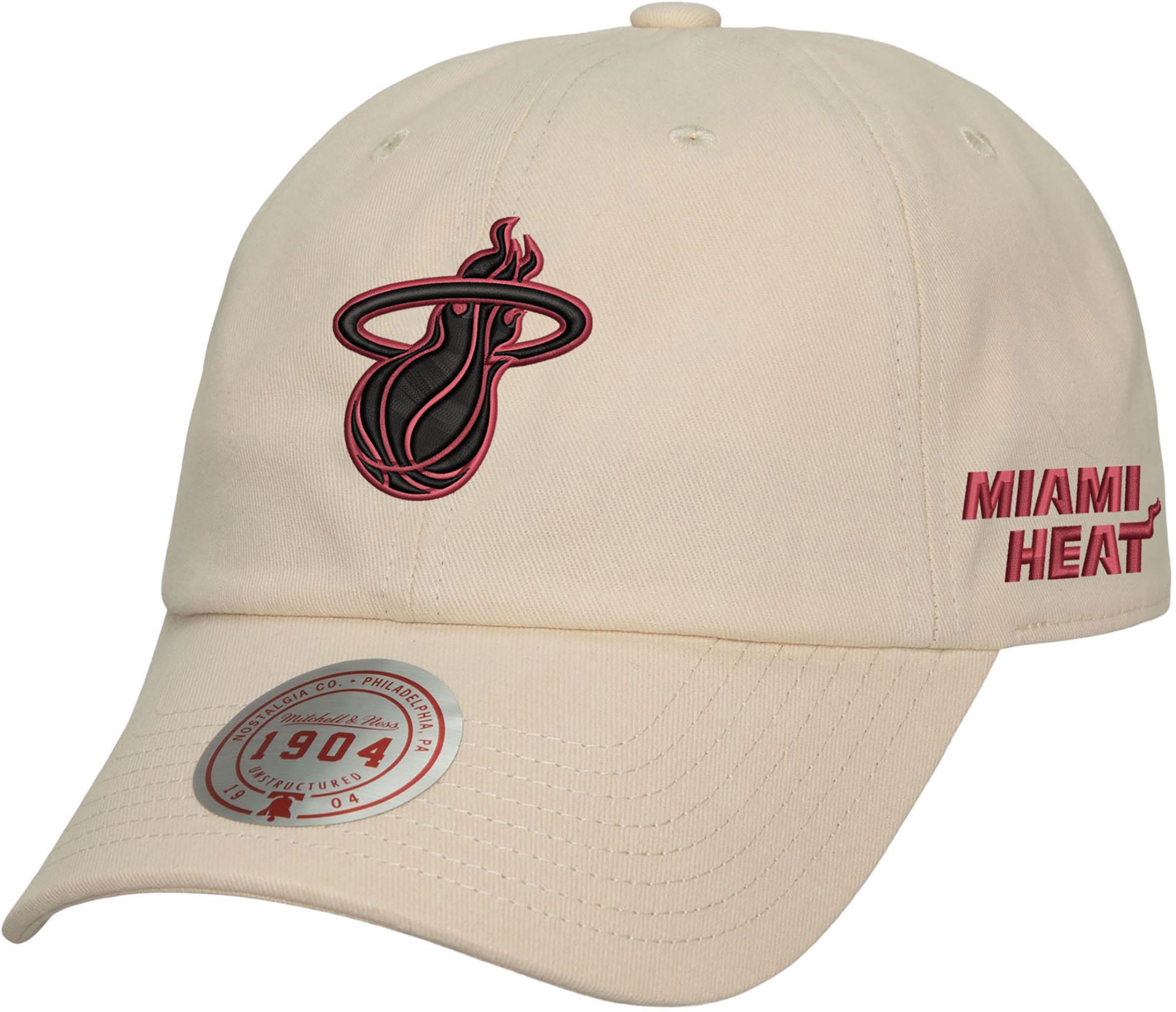 Mitchell & Ness Adult Miami Heat Off White 1904 Strapback Hat