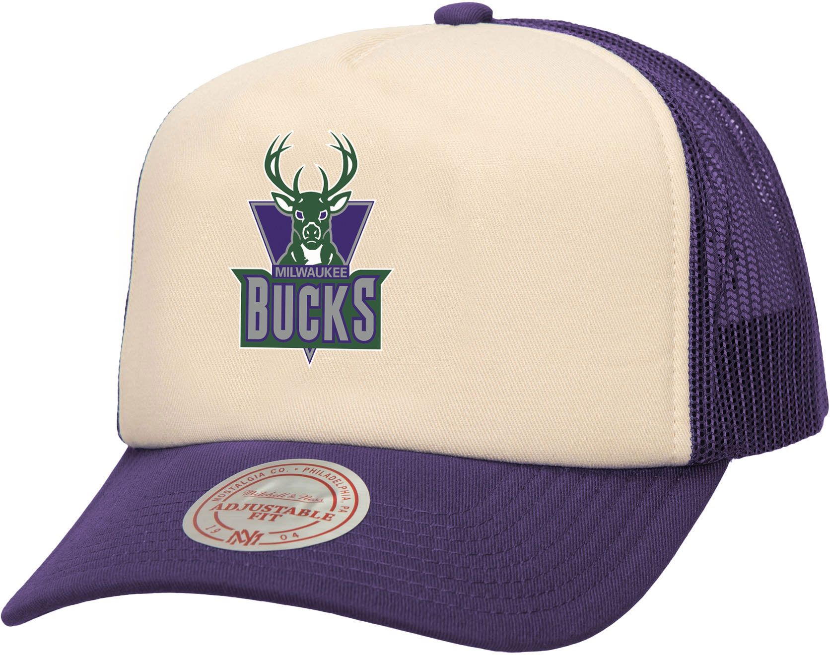 Mitchell & Ness Adult Milwaukee Bucks Off White Block Trucker Hat