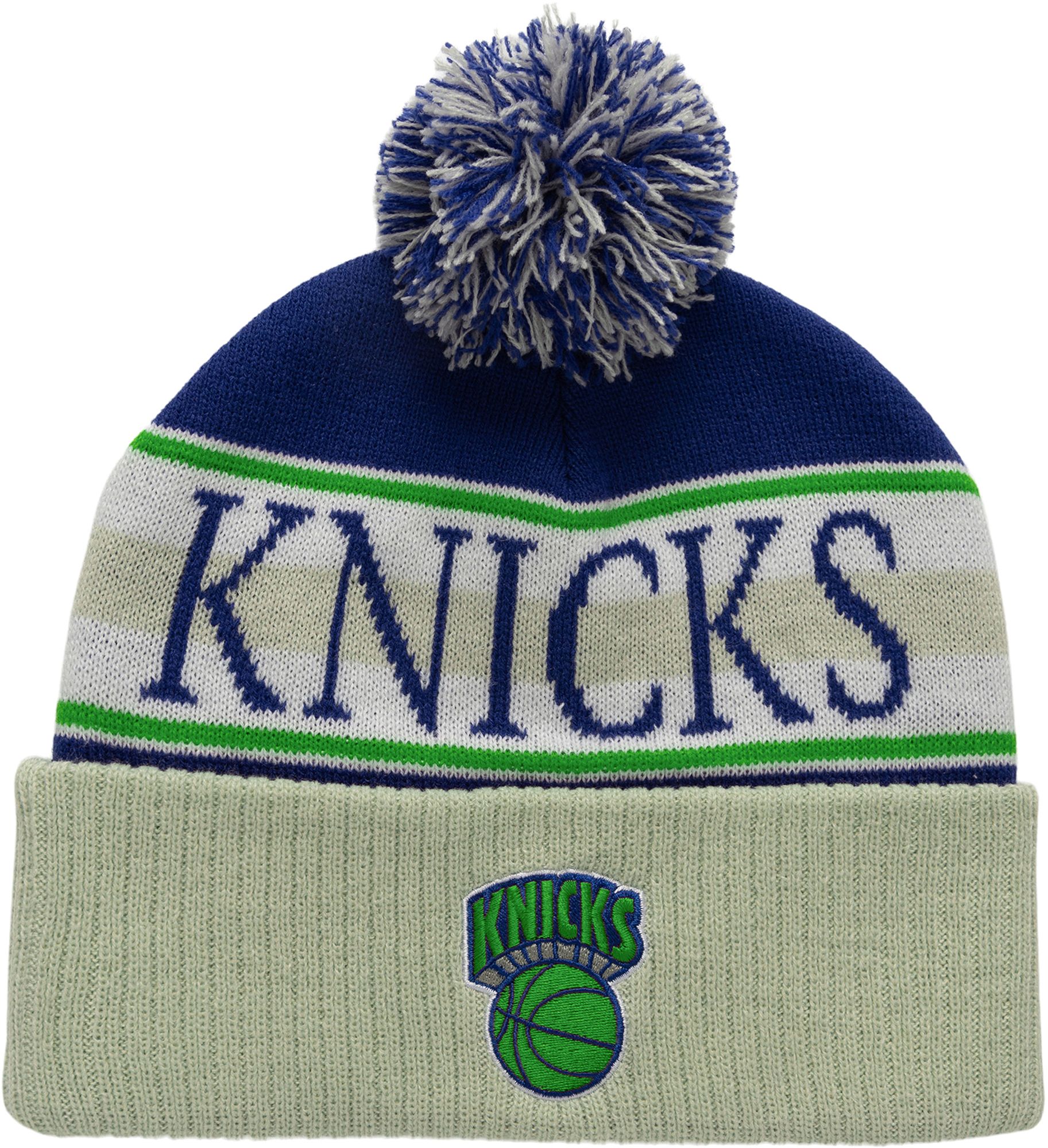 Mitchell & Ness Adult New York Knicks Blue Cuff Pom Knit Beanie