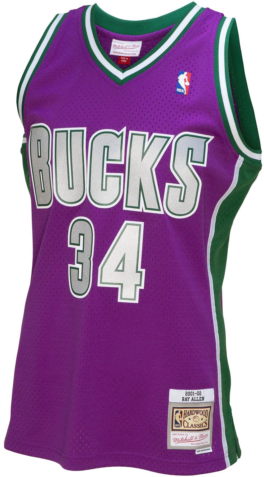 Mitchell & Ness Men's 2001 Milwaukee Bucks Ray Allen #34 Purple Hardwood Classics Swingman Jersey