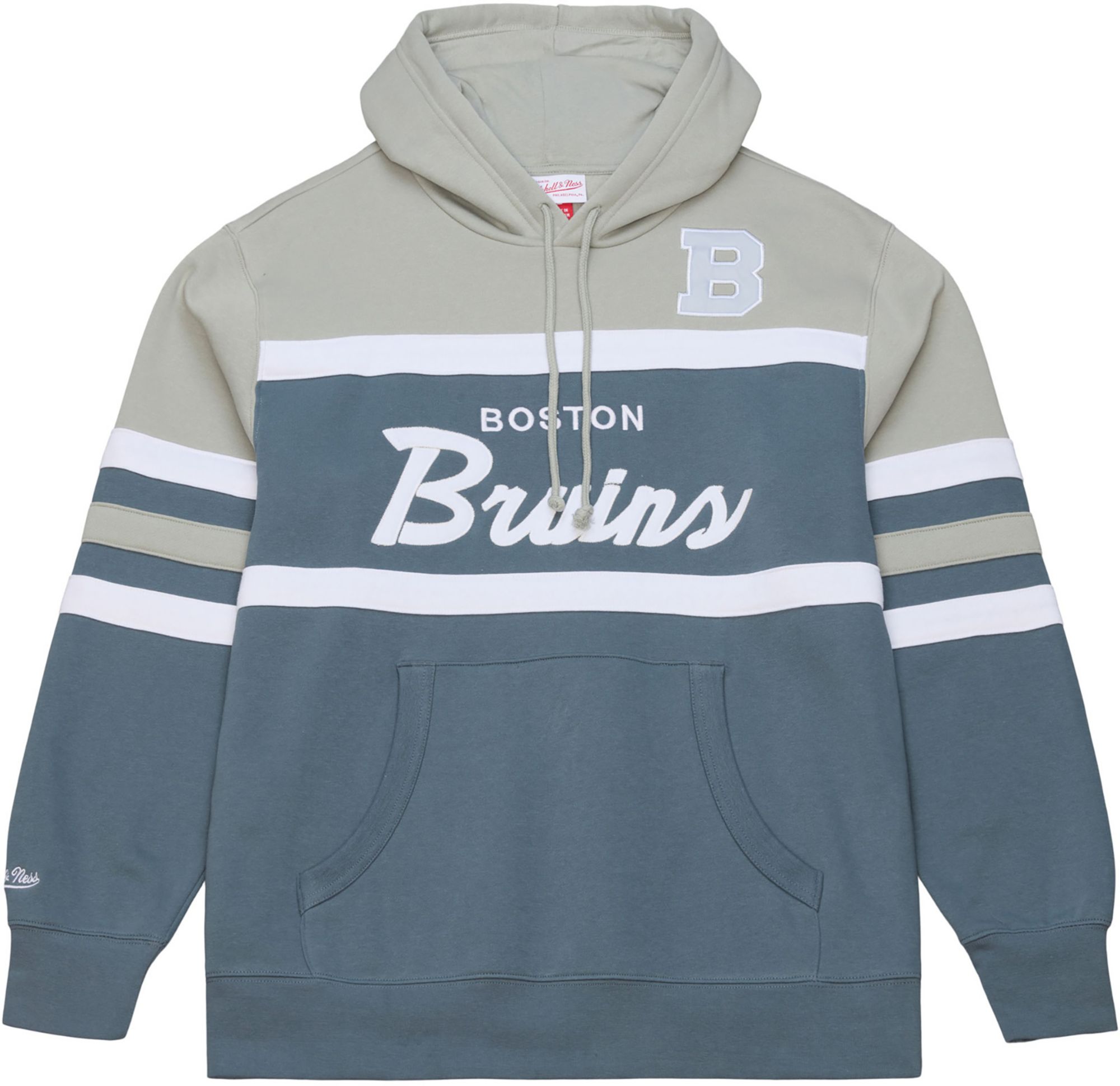 Mitchell & Ness Men's Boston Bruins Light Grey Head Coach Pullover Hoodie