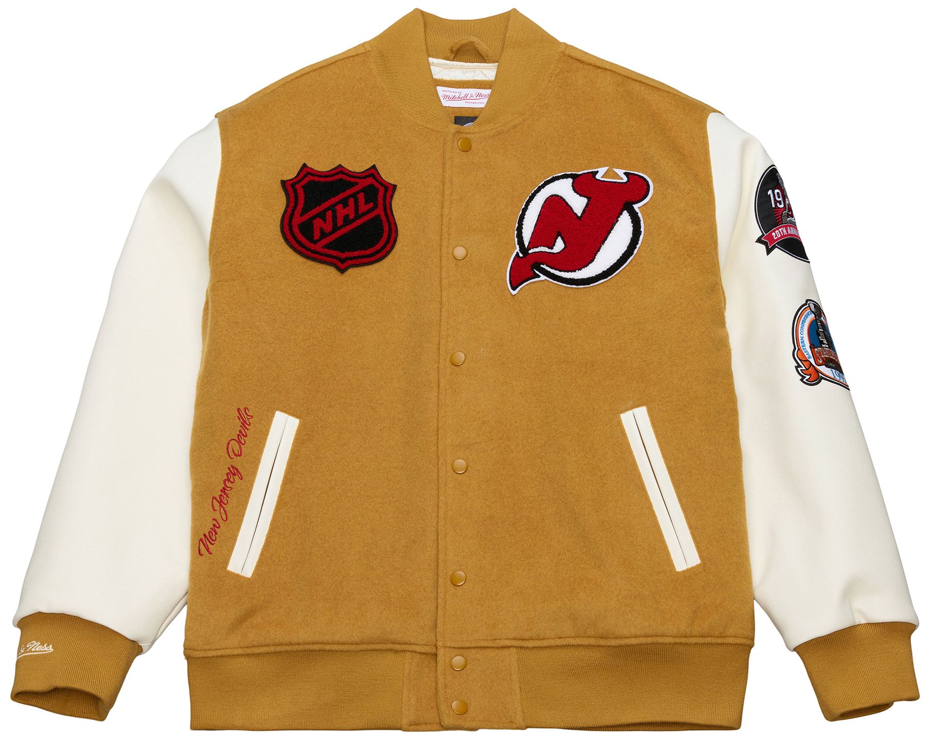 Mitchell & Ness Men's New Jersey Devils Tan Dusted Varsity Jacket