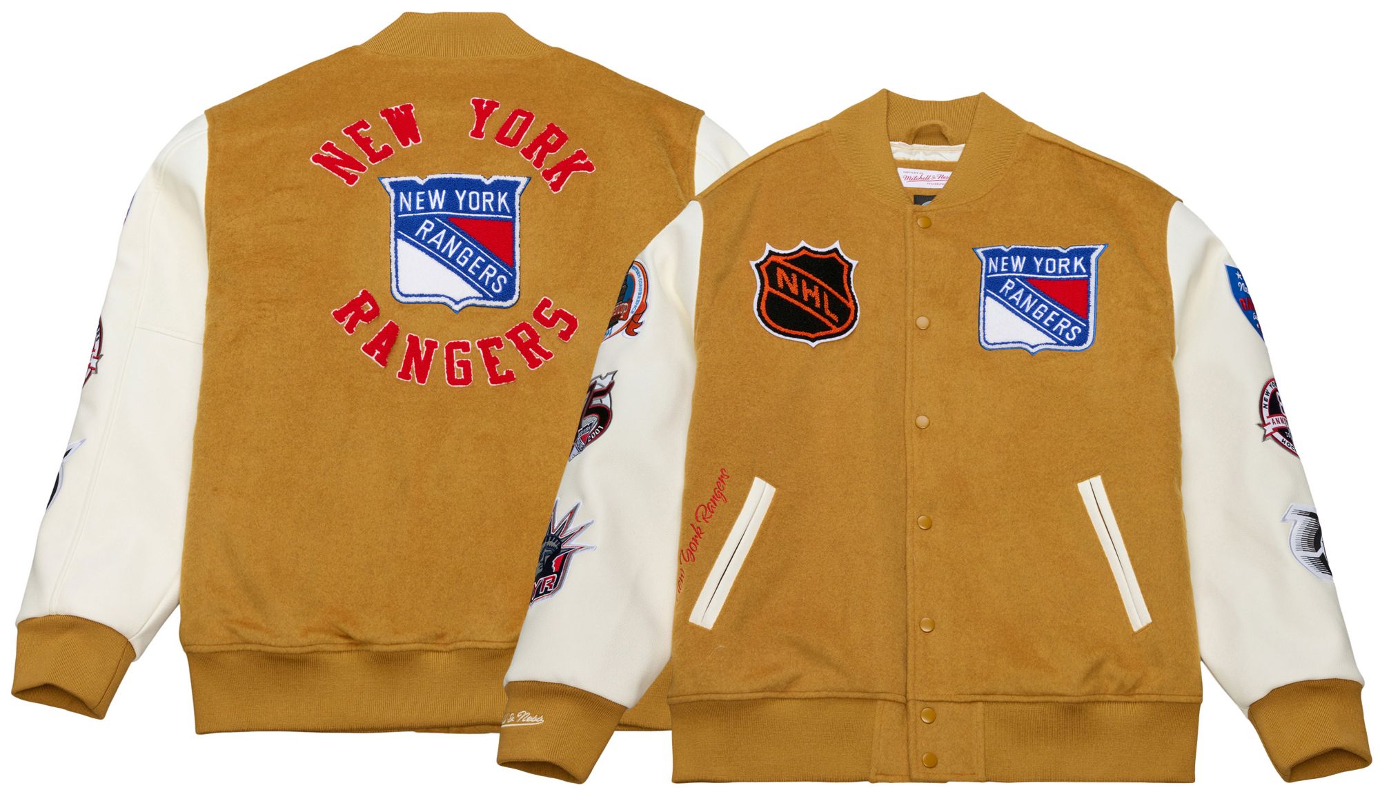 Mitchell & Ness Men's New York Rangers Tan Dusted Varsity Jacket
