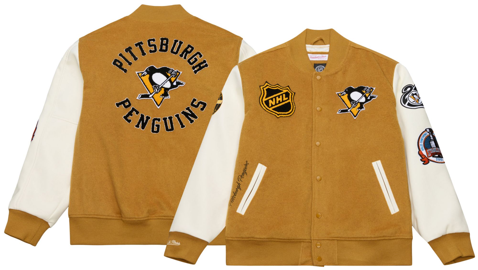 Mitchell & Ness Men's Pittsburgh Penguins Tan Dusted Varsity Jacket