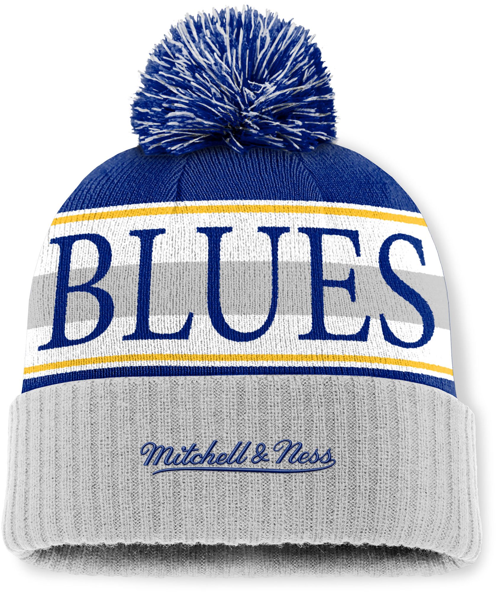 Mitchell & Ness Men's St. Louis Blues Blue and Grey Classic Pom Knit Beanie