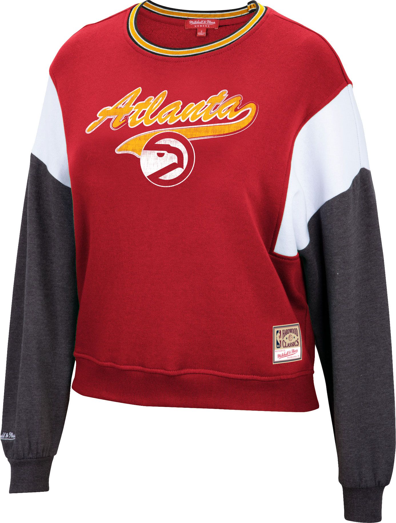 Mitchell & Ness Women's Atlanta Hawks Red Hardwood Classics Colorblock Crew Pullover Sweatshirt