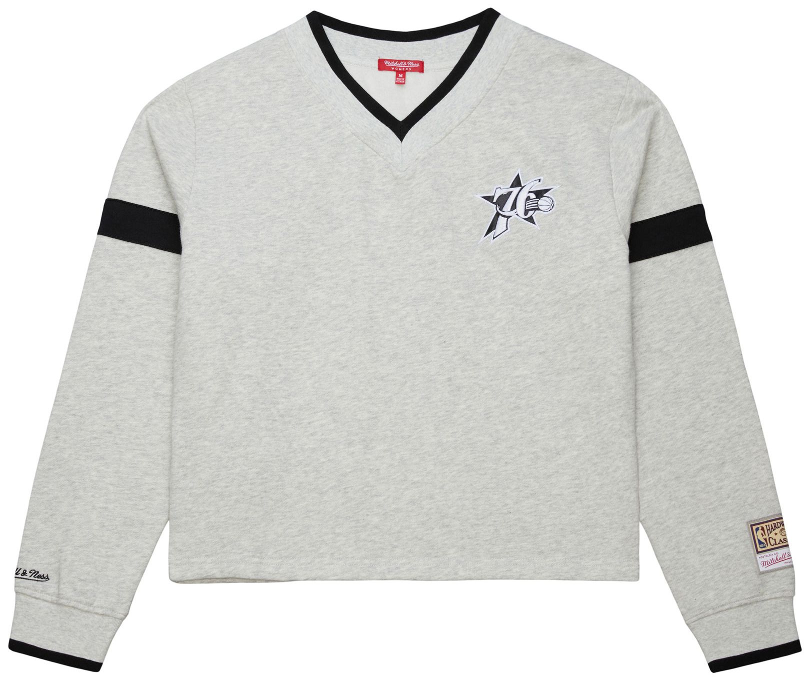 Mitchell & Ness Women's Philadelphia 76ers Hardwood Classics Off White Cropped V-Neck Sweatshirt