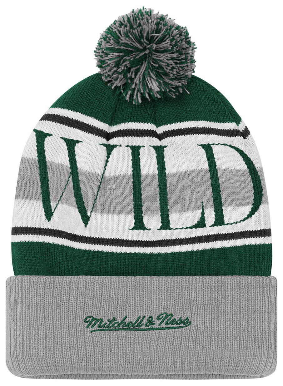 Mitchell & Ness Youth Minnesota Wild Green Classic Pom Knit Beanie