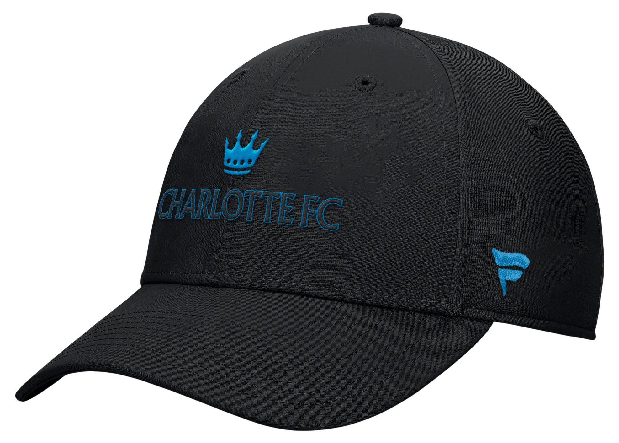 Very cool Black on black with blue highlighted raised lettering for Charlotte FC and blue crown embroidery above