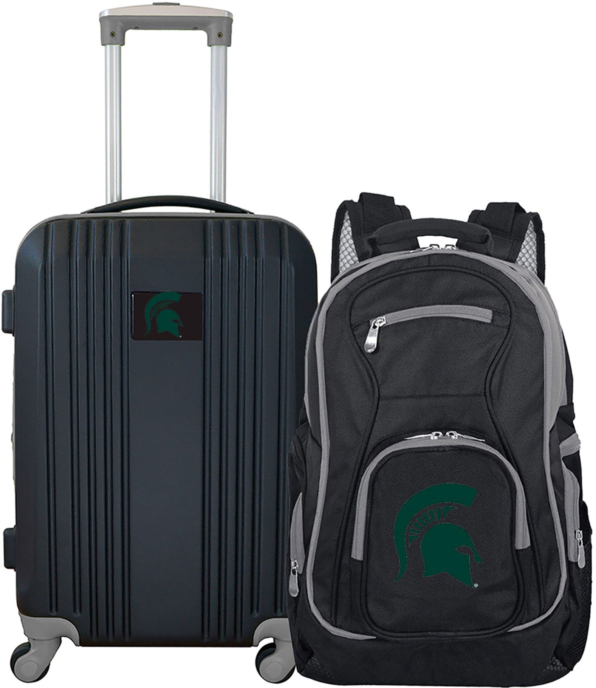 Carry all of your belongings while representing your team spirit with the Mojo® Michigan State Spartans Two Piece Luggage Set.