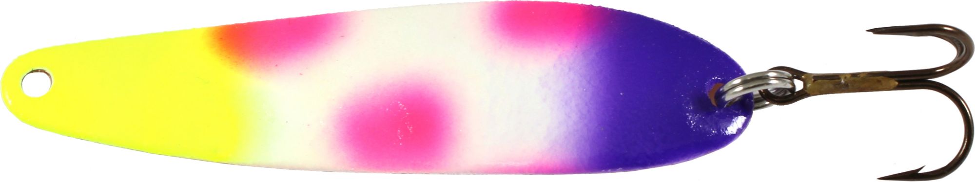 Designed to glow in low light conditions, the Moonshine Walleye Spoon features an attractive pattern on one side and flash metal on the other side to deliver a powerful performance that pulls in fish.