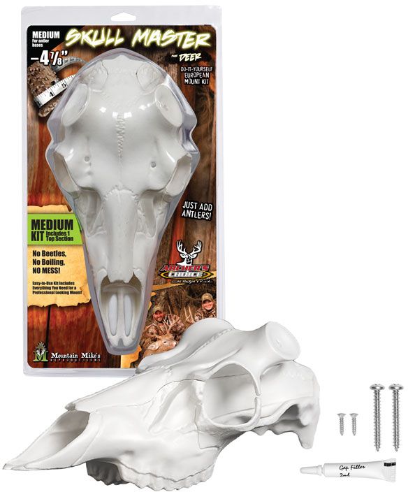 Mountain Mikes Reproductions ® Skull Master Mounting Kit is compatible with your own harvested or shed antlers. In timely clean fashion, you can achieve an awesome looking European deer skull. All hardware needed for assembly is included in the Skull Master Kit. Also included are two different size top sections that are interchangeable. This kit allows the option for choosing the size that fits your antlers best.