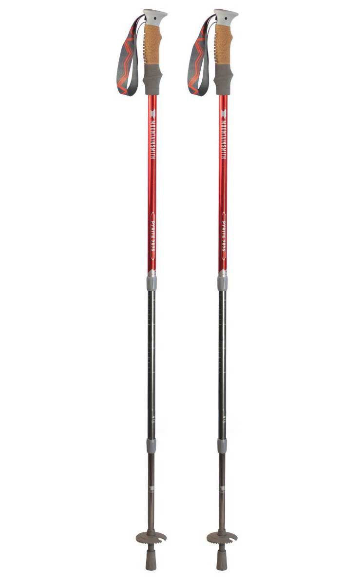 With an anti-shock system and twist lock height adjustment, the Mountainsmith Pyrite 7075 Trekking Poles are perfect for any hiker. These poles are designed with aircraft-grade aluminum, three telescoping sections, and molded cork/EVA/TPR handles for sturdy, comfortable use. They have soft-touch webbing wrist straps and include rubber boot tips and removable hiking baskets.