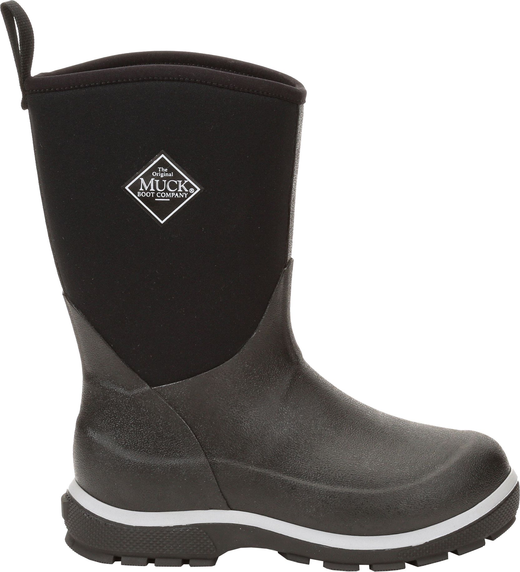 As fall turns to winter, you too should turn to the Muck Boots® Kids' Element winter boots for the ultimate in waterproof and cold weather protection. Constructed with thick 5mm neoprene uppers and a soft fleece lining, these winter boots offer insulation against the cold and a waterproof membrane that blocks all moisture. An EVA footbed supplies comfort and support, while the rubber outsole ensures a stable step on wintry surfaces.