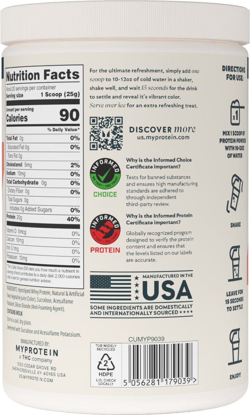 Juicy by nature, powerful by design. Clear Whey Protein is fruity, refreshing, and packed with protein — a lighter way to support your goals. Each serving delivers 20g of high-quality protein to support muscle growth, maintenance, and recovery. It’s a great option to help you stay consistent with your nutrition — especially around training.