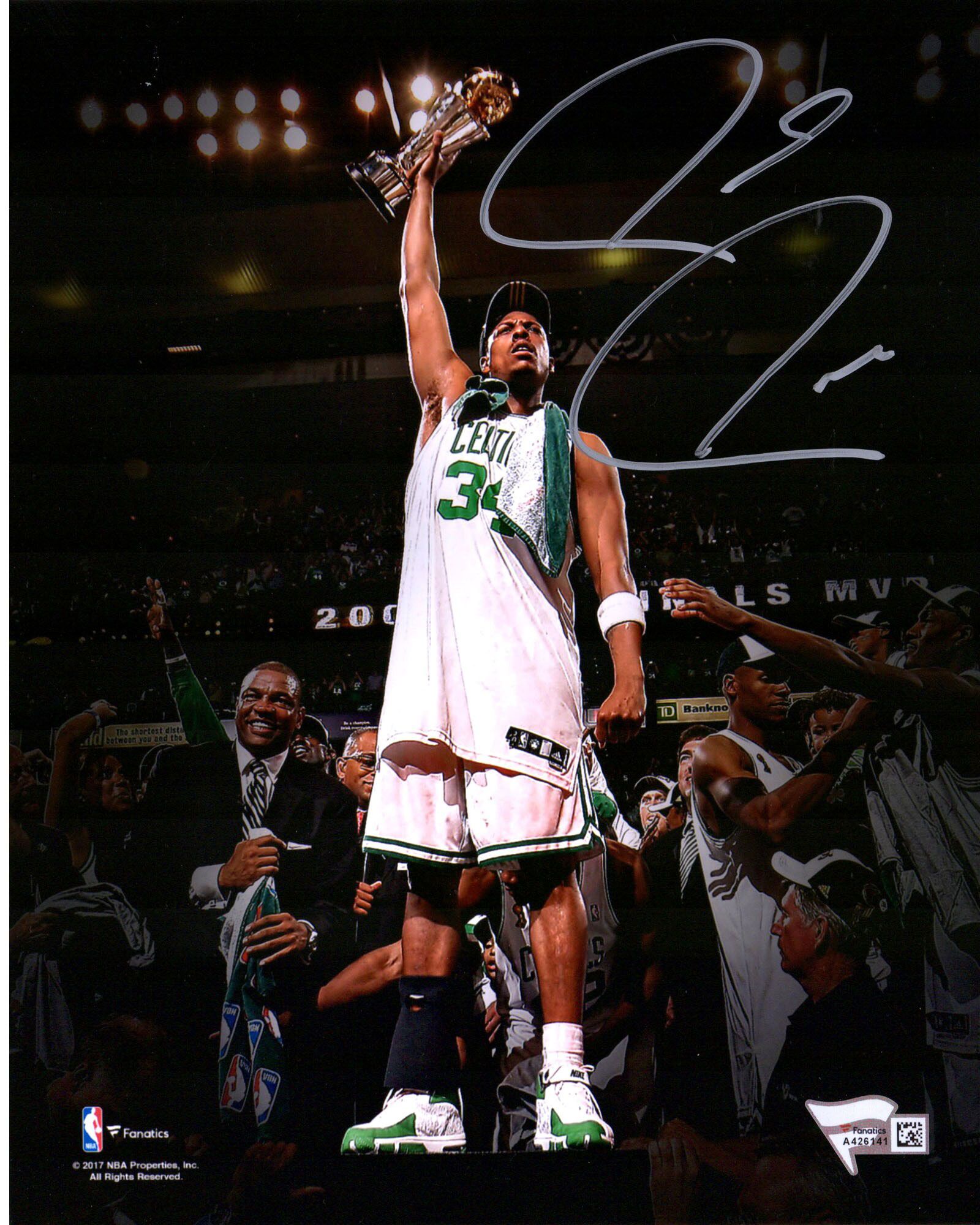 Relive the Boston Celtics' unforgettable 2008 championship run with this extraordinary piece of memorabilia. Paul Pierce cemented his legacy as a Celtics icon by leading his team to victory and earning the NBA Finals MVP award. This striking 16" x 20" photograph captures Pierce holding the coveted MVP trophy, a testament to his skill, determination, and leadership. Personally autographed by Pierce, this piece also includes the inscriptions "HOF 21" and "The Truth," adding further significance to this already remarkable collectible. Authenticated with FanSecure Technology, this photograph is a must-have for any serious sports memorabilia collector.
