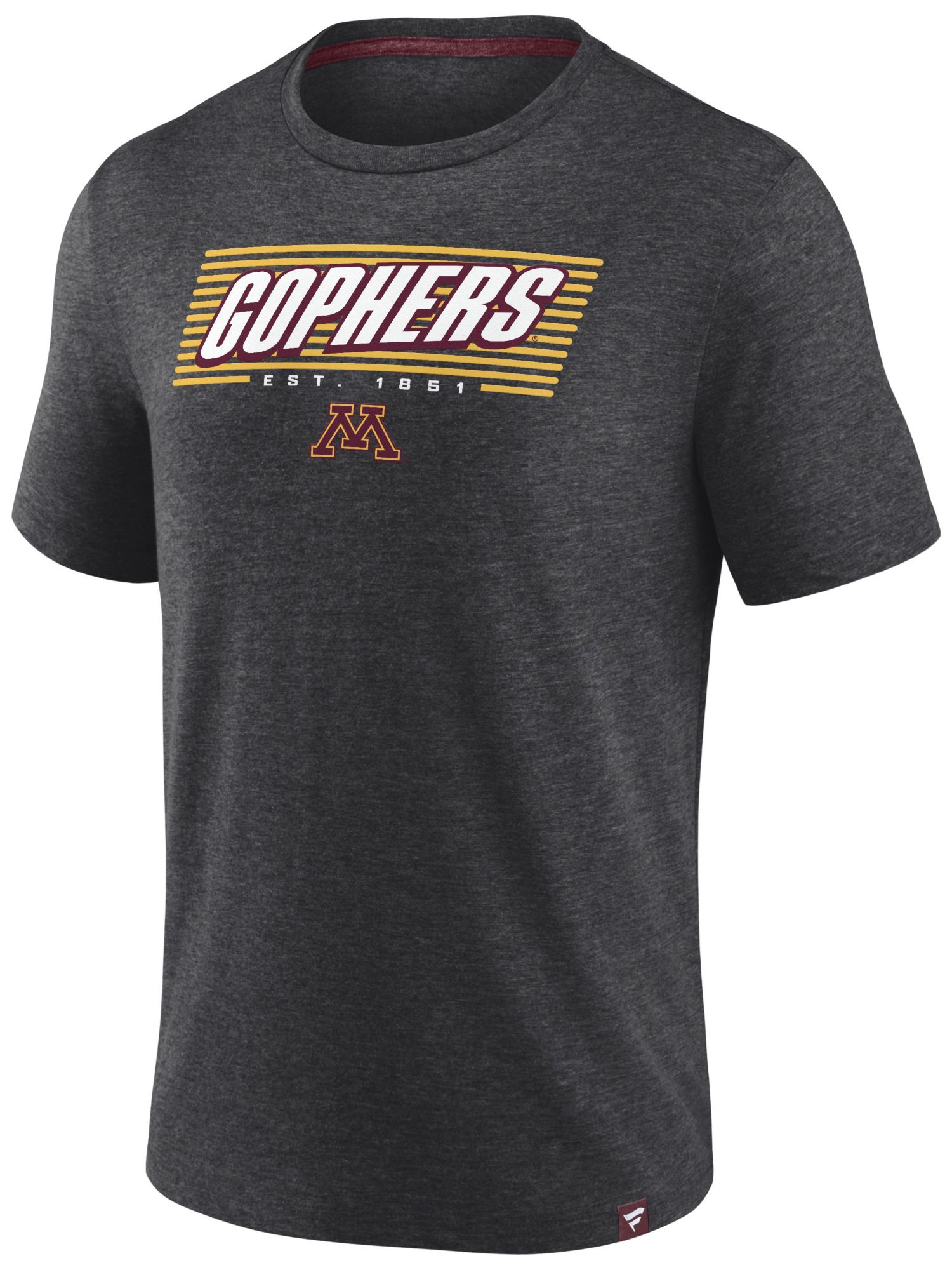 NCAA Men's Minnesota Golden Gophers Charcoal Heather Offset Stacked Logo T-Shirt