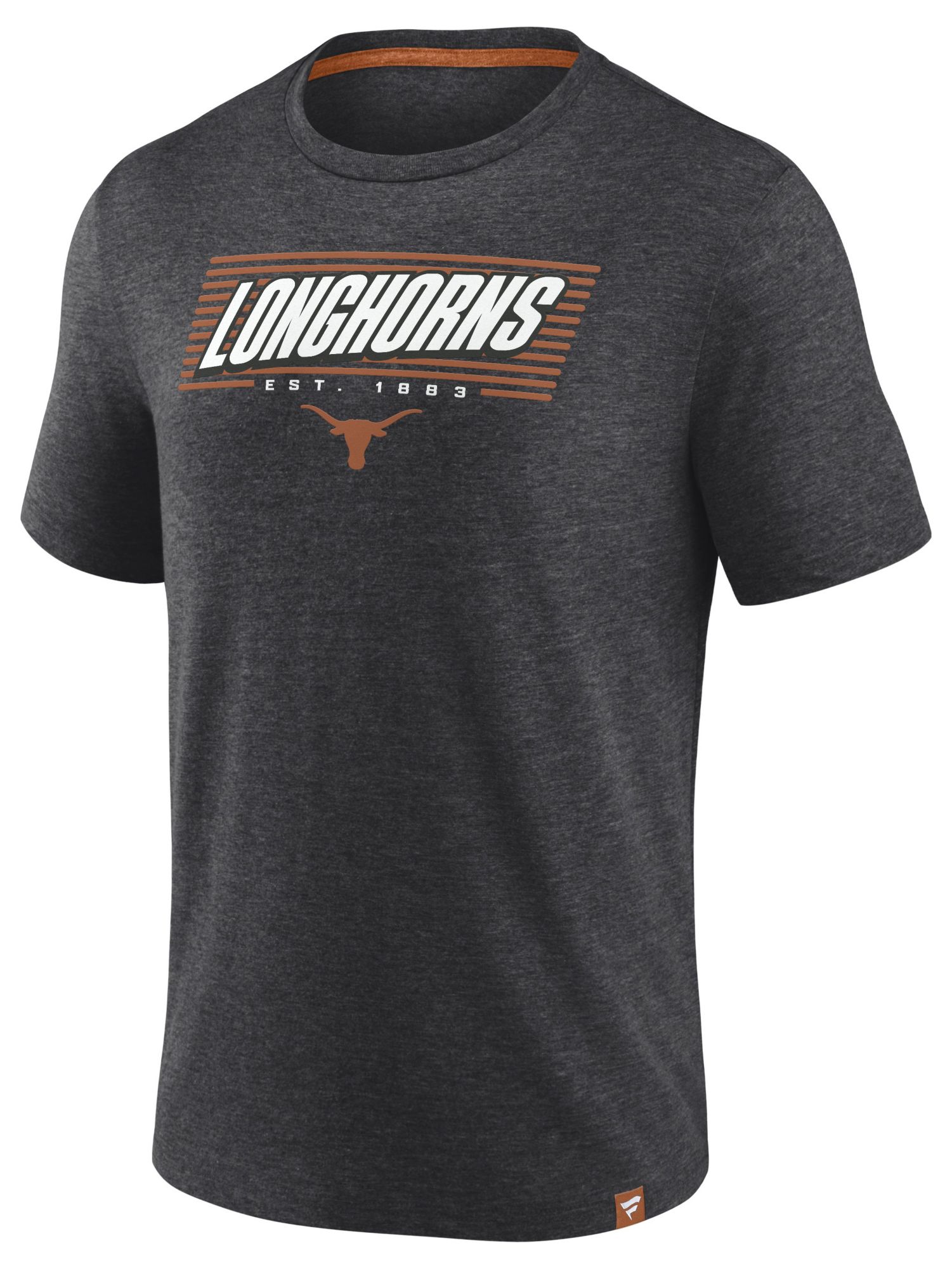 NCAA Men's Texas Longhorns Charcoal Heather Offset Stacked Logo T-Shirt