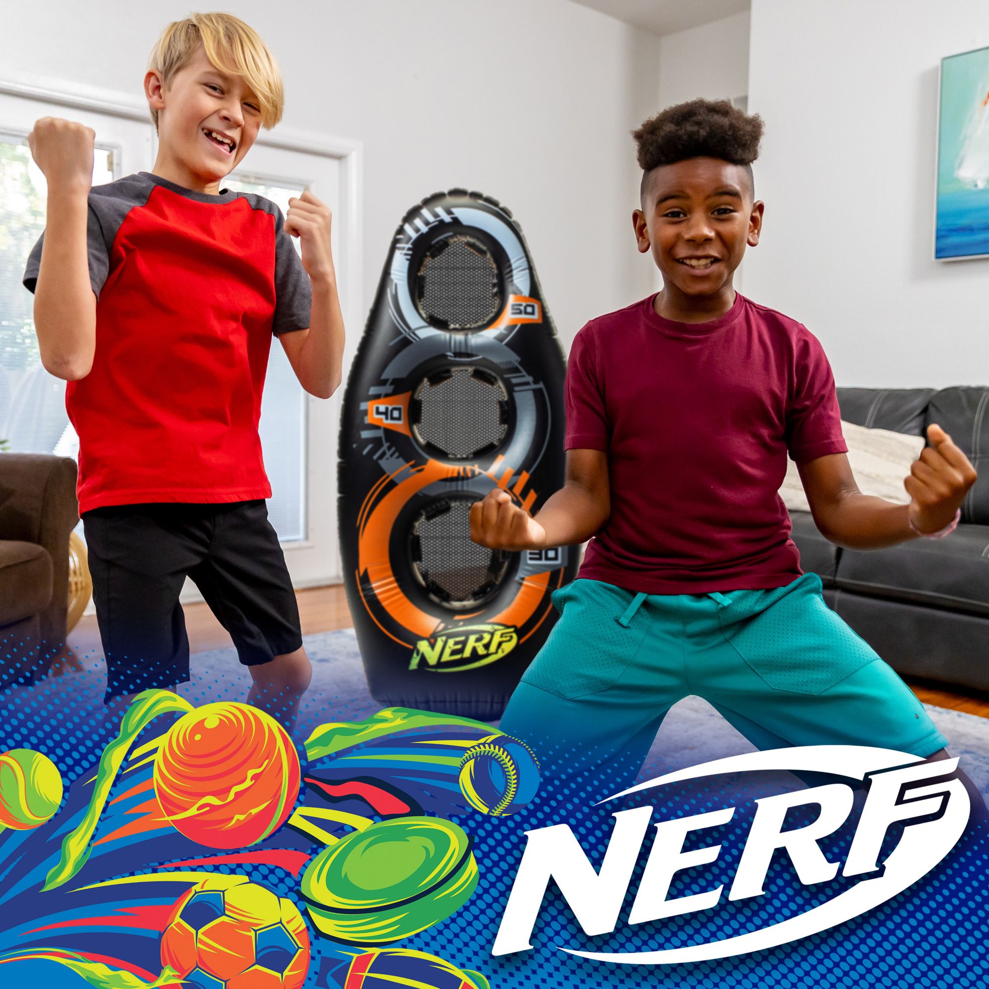 The NERF Proshot Inflatable Target Set is the perfect way for kids to put their accuracy to the test and have a ton of fun! This set comes with (1) mini NERF foam football, but can be used with any mini ball or NERF blaster (not included). Score points by hitting your targets and honing your accuracy skills! Play indoors or out and challenge your friends to see who has the ultimate dead-eye accuracy. Grab your NERF Inflatable Target Set and start the game today!